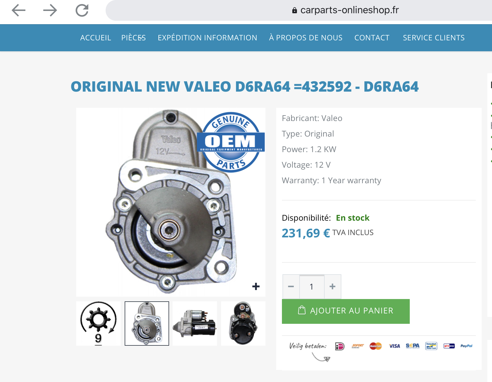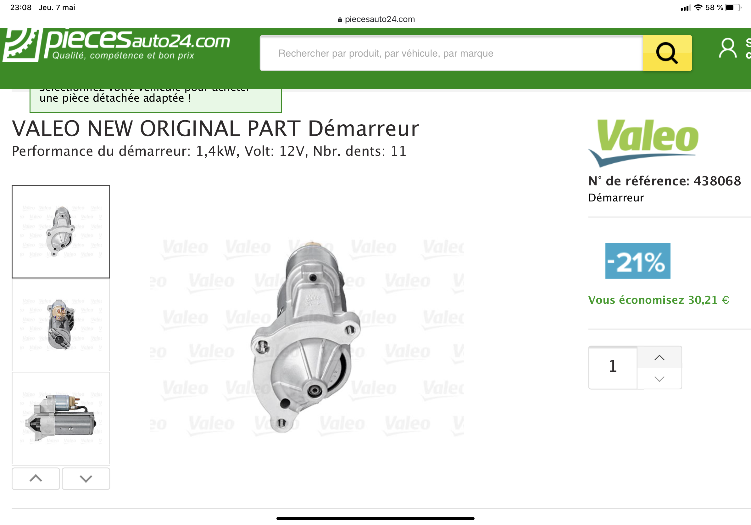 Dom3200 a écrit :En effet, mais la réf de la fiche nous amène précisément sur LA réf spécifique maserati et donc à 505 euros au lieu de 100 (pour le valeo) .. J ai vu sur un autre post de FranckyJohns un Hella qui marche aussi du tonnerre... Et en fait j ai l impression qu il y a plein de réf valeo qui correspondent, même nombre de dents, même sens, même puissance. D ou cette question...