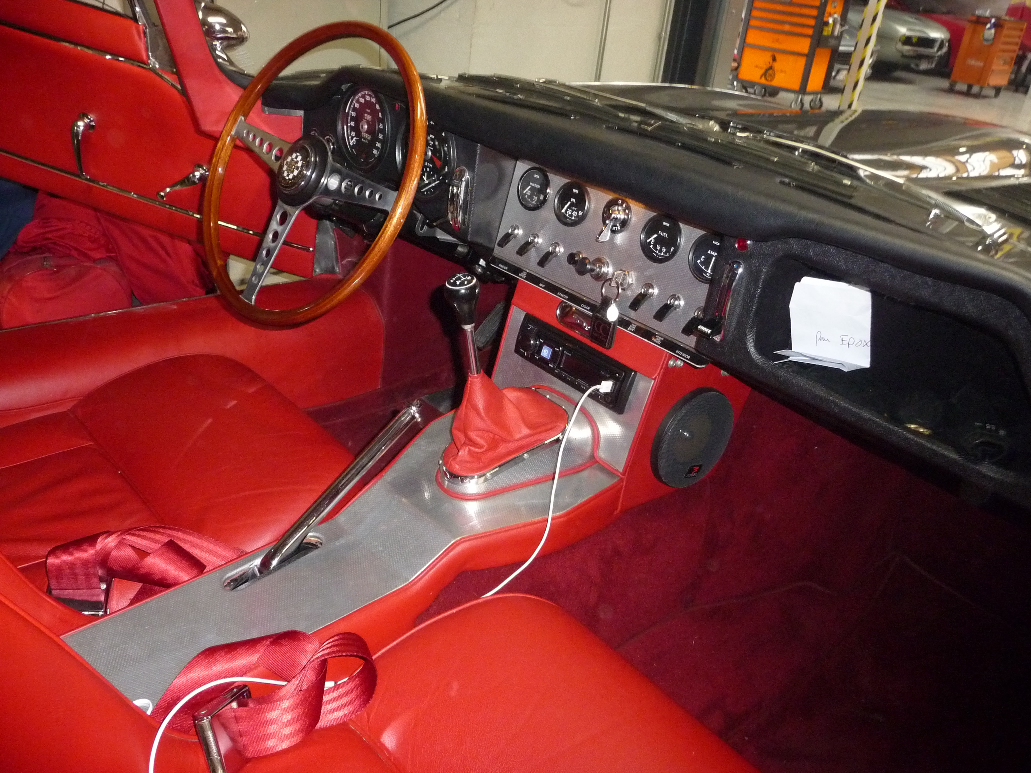 Le véhicule présent a en outre certaines incongruités comme l'autoradio, des améliorations techniques comme radiateur plus efficace, starter plus puissant et alternateur au lieu de dynamo, ainsi que cet ensemble en cuir qui est un vrai plus, mais ...qui sera critiqué par des puristes! Mais ça reste une très belle Type E.