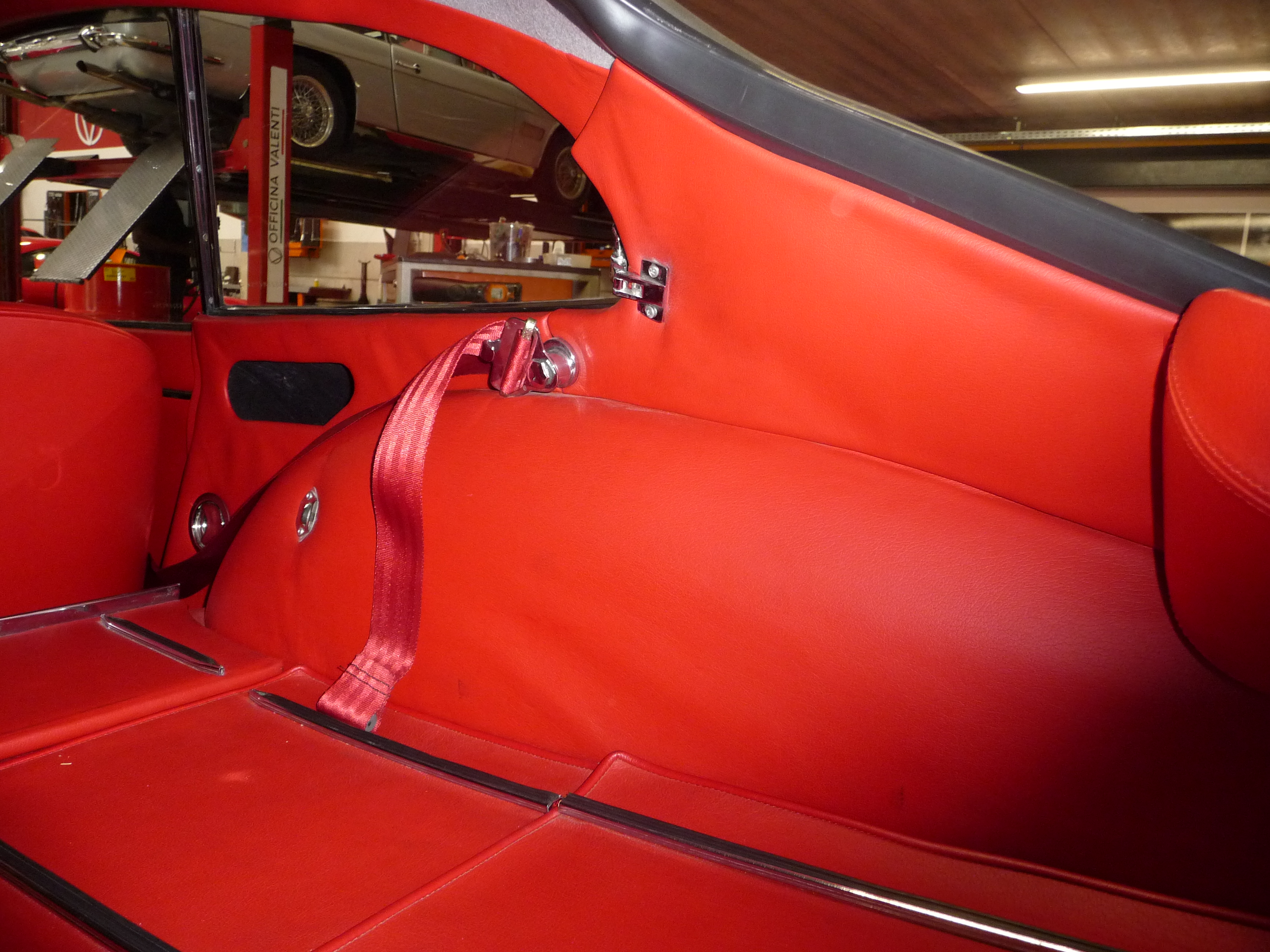C'est splendide, les moindres détails et recoins sont recouverts de ce cuir, d'un rouge plus vif que celui du vinyle Jaguar, et ça fleure bon à l'intérieur: