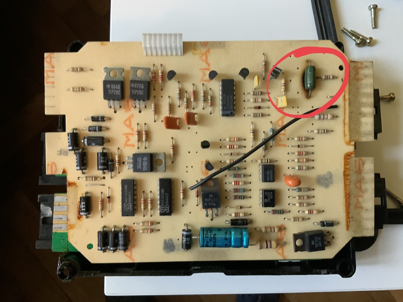 Après vérification, elle ne semble pas HS pour autant et n'a finalement pas généré de dysfonctionnements visibles. Au contraire, la résistance visible à droite sur la photo avait du être changée pour résoudre un problème de démarrage.