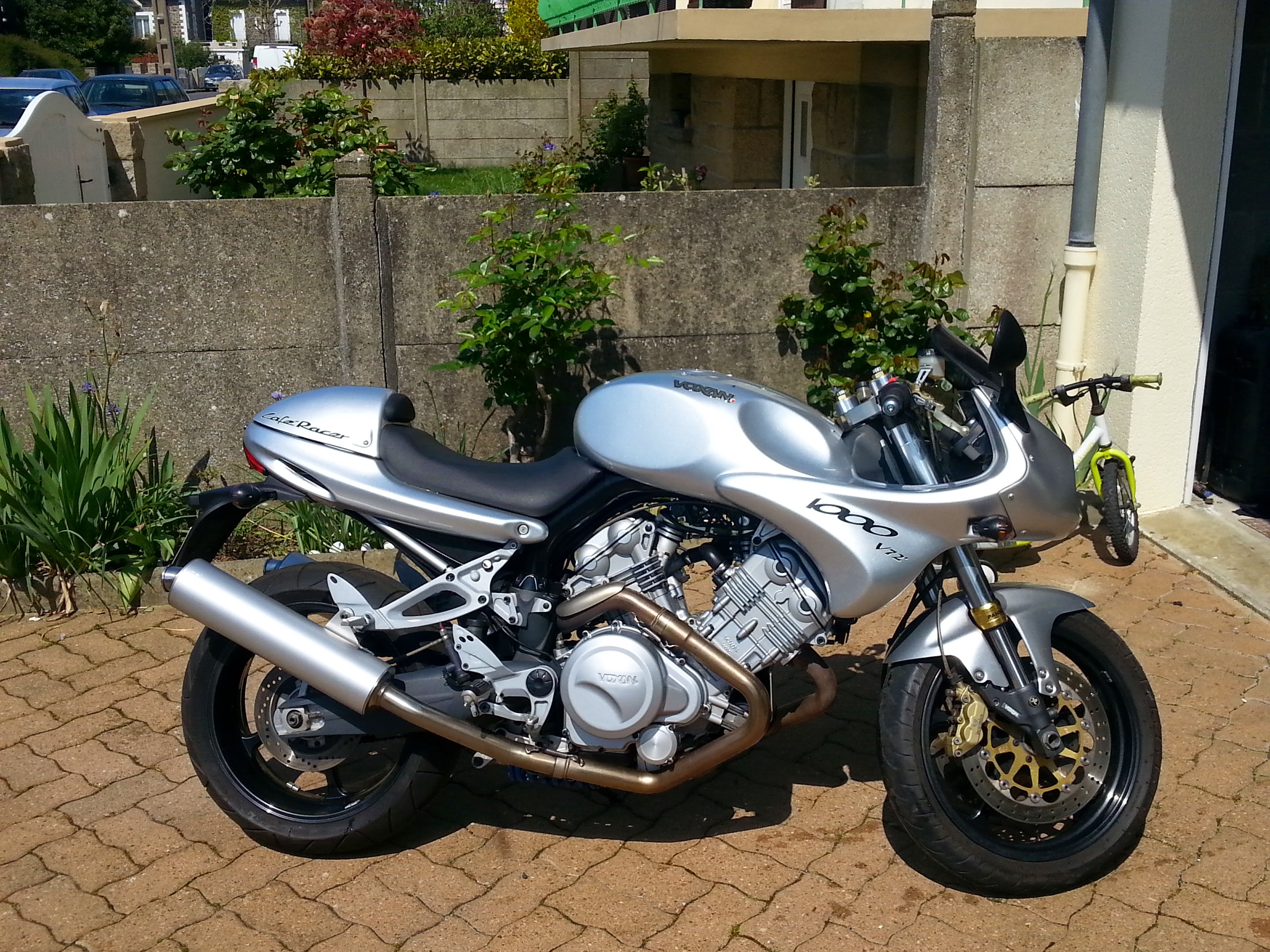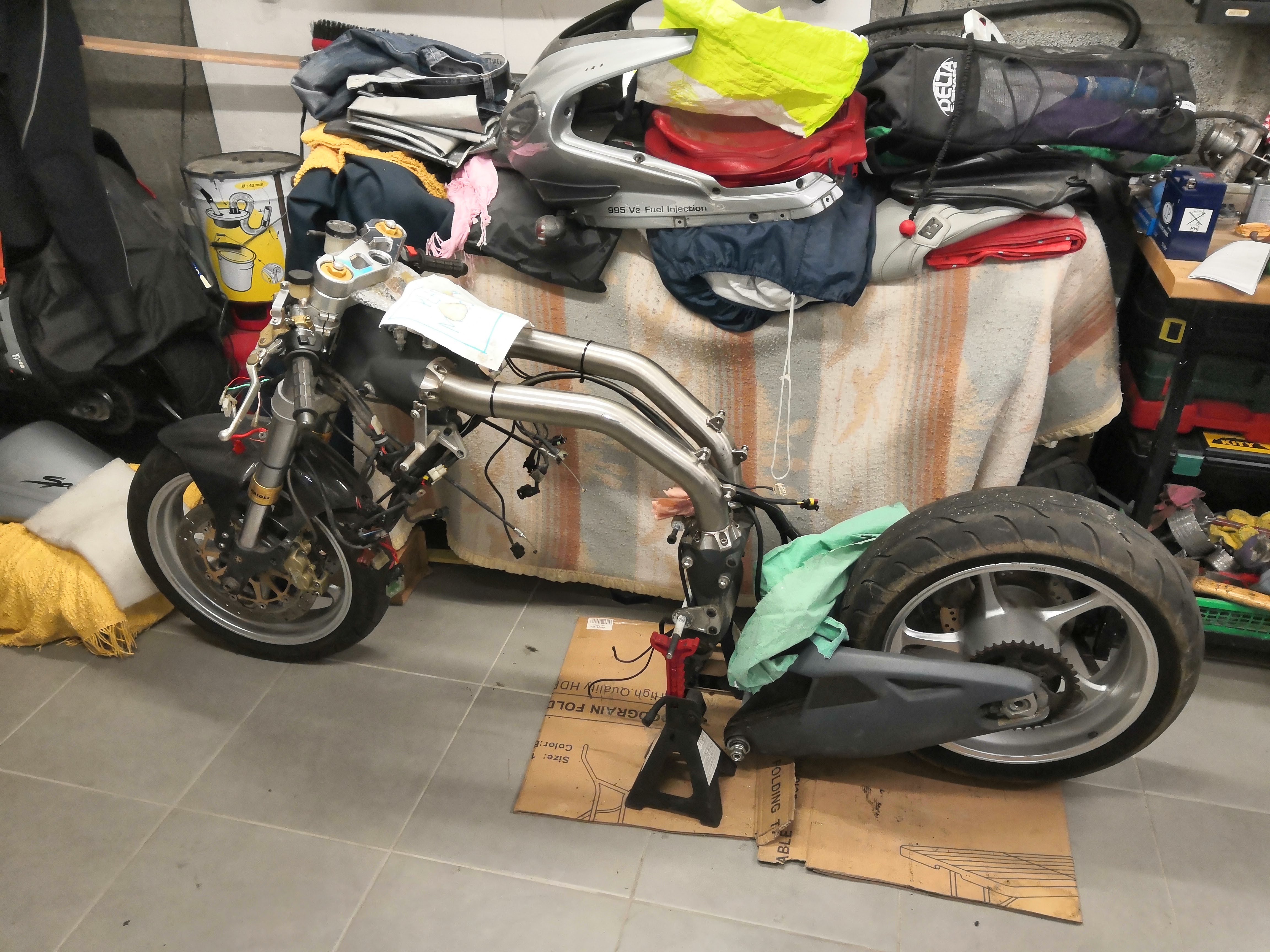 Avant: Apres: -VTR SP1 de 2001 (pas eu de restau, 16000 bornes): -Encore 1 moto francaise construite à 31 exemplaires au monde VB1 (Voxan et Boxer Design) achetée en Irlande, en cours de restauration: -Demontage complet de la moto et du moteur pour pose du kit évolution (gage de fiabilité):