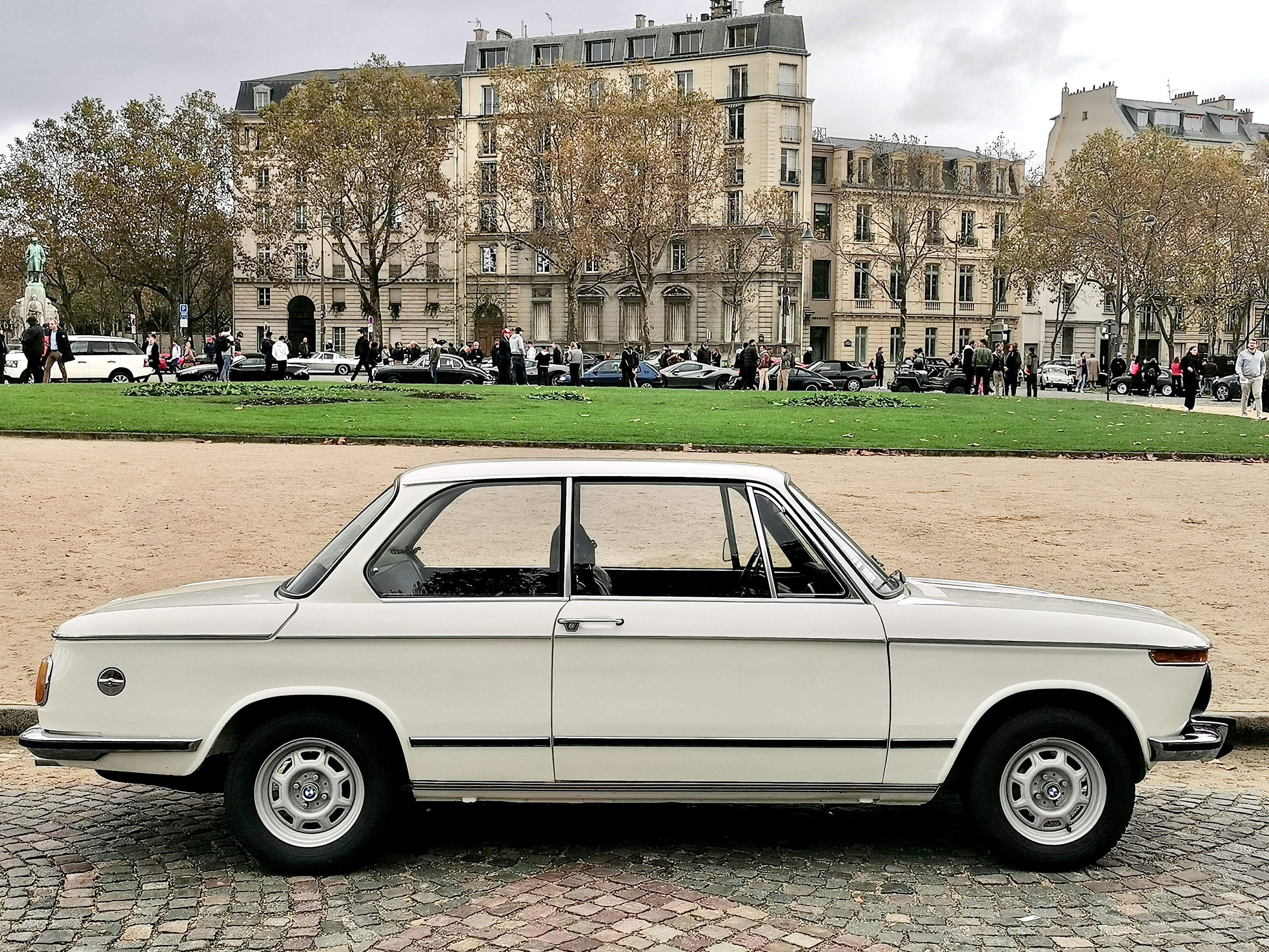Sous le porche des Invalides, plusieurs générations de Porsche.