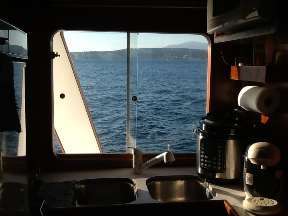 Nous venons de traverser le golf du lion en 24 H environ,avec une mer d'huile. Un soleil d'été arrivant sur l'Espagne.