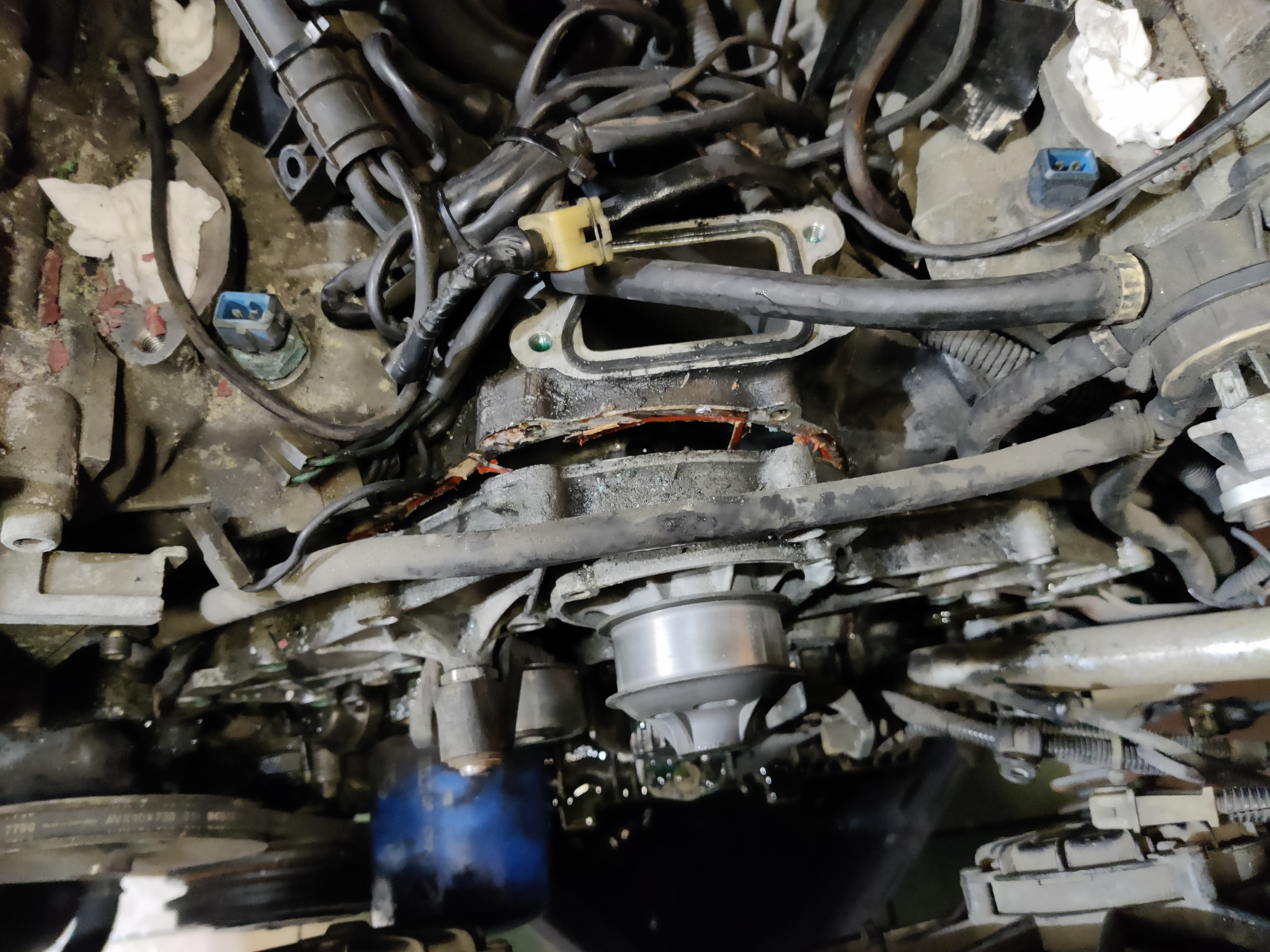 Bref, la pompe à eau est enlevée, elle semble plutôt en bon étant et je ne constate pas de jeu, mais n'ayant aucune idée de son âge...