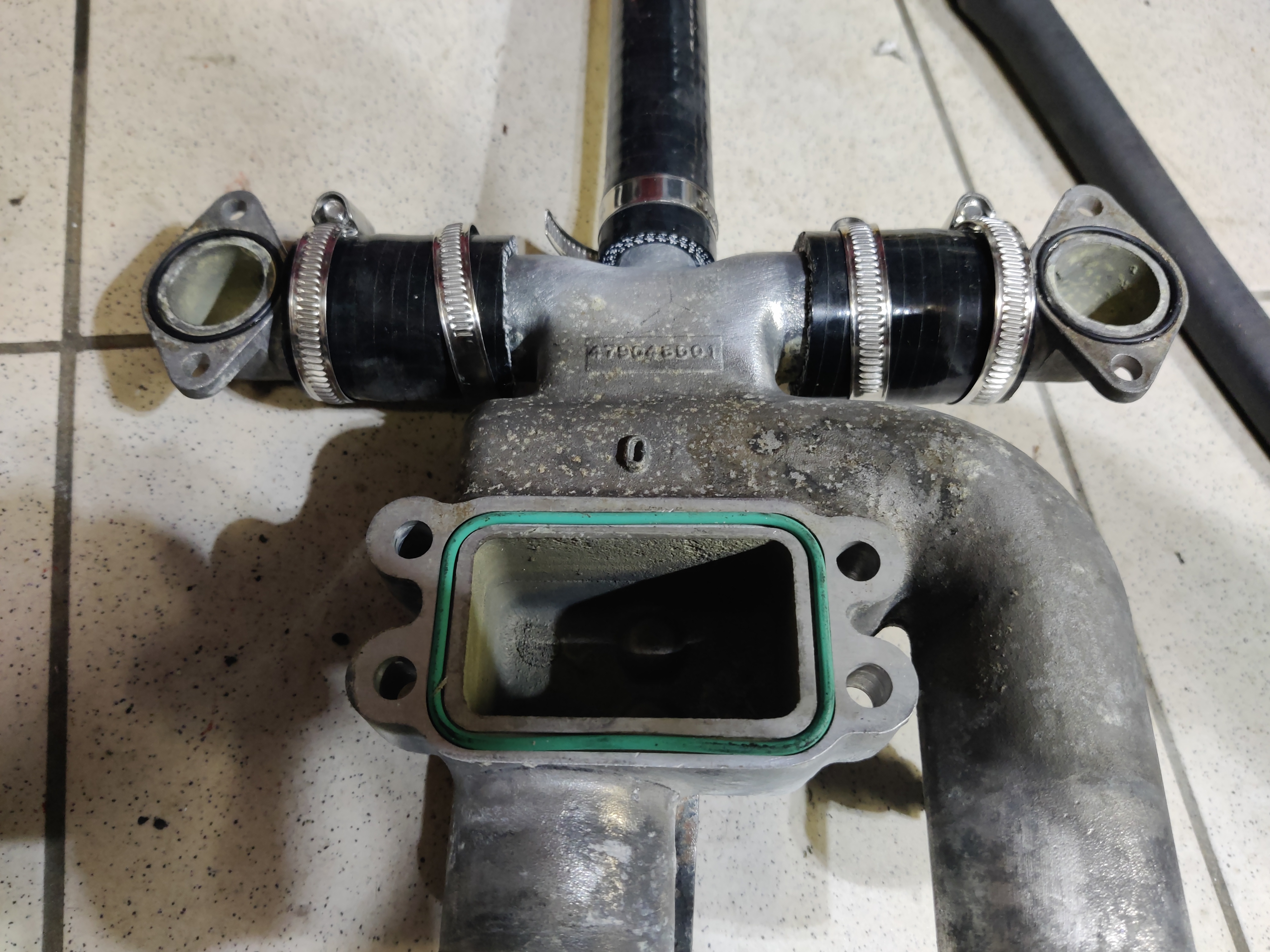 Mise en place des nouveaux (le vert et deux ronds au niveau des coudes qui rentrent dans les culasses). Les colliers ne sont pas encore serré ni bien positionné sur cette photo.