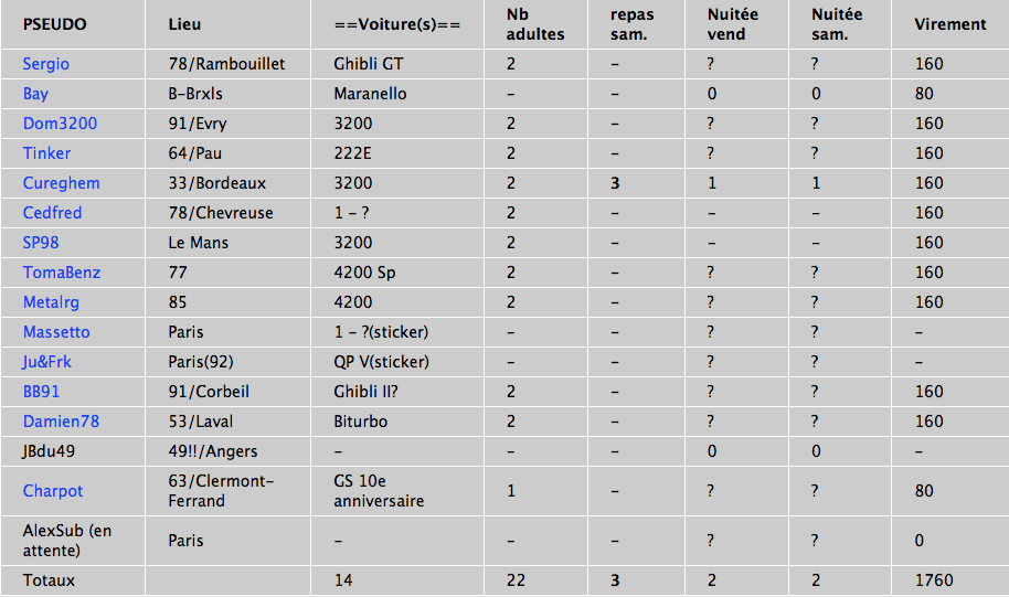 Mulsanne. Il reste 10 couchages, à un tarif très compétitif: 70 € les deux nuits de vendredi et samedi. Par contre il faut amener