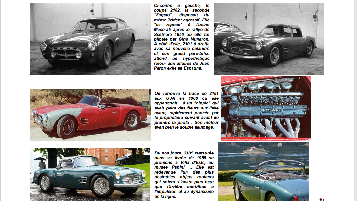 Voici l'histoire rocambolesque de ce modèle unique que j'avais racontée dans le livre "la famille des Maserati A6" (cliquez sur les images pour agrandir texte et photos) :