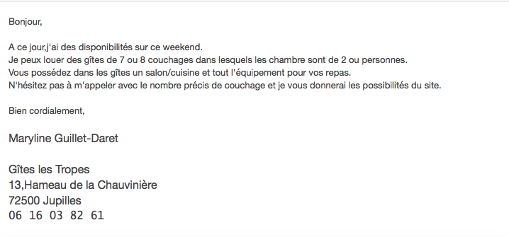 Elle n’était pas dans ma liste de mails envoyés, mais son mail n’était ni dans le doc, ni sur le site.