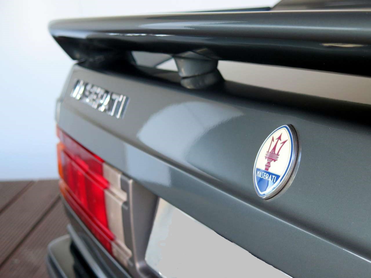 Cette nouvelle génération conservait les pare-chocs enveloppant de la fin de la seconde période, désormais peints dans la couleur de la carrosserie. La calandre est nettement avancée ce qui affine beaucoup l’avant de cette ultime génération de Biturbo :