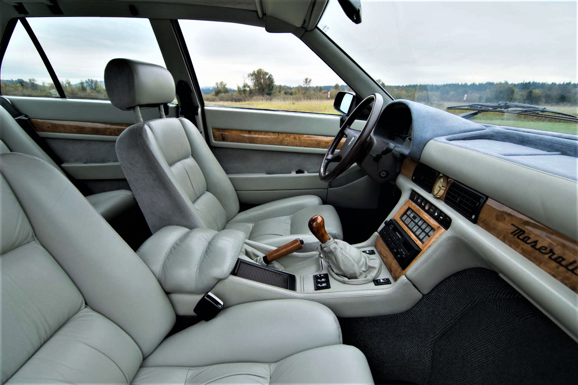 Curieux, celle-ci n’a pas le volant en bois qui est normalement de série. Elle a un volant de Biturbo première génération :