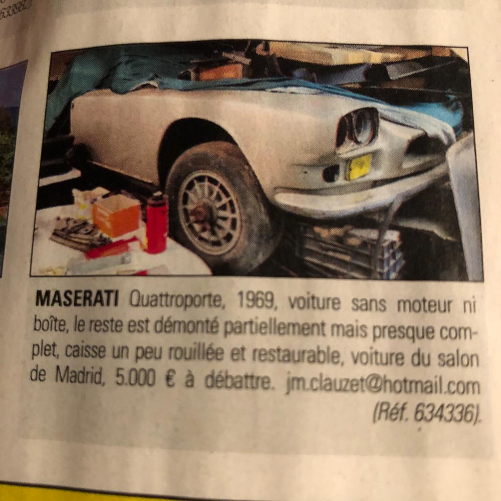 Pour tenter notre ami William, s'il n'est pas dégoûté des travaux de restauration, une QP I abordable au départ mais avec un sacré travail en perspective (et le groupe propulseur à trouver...).