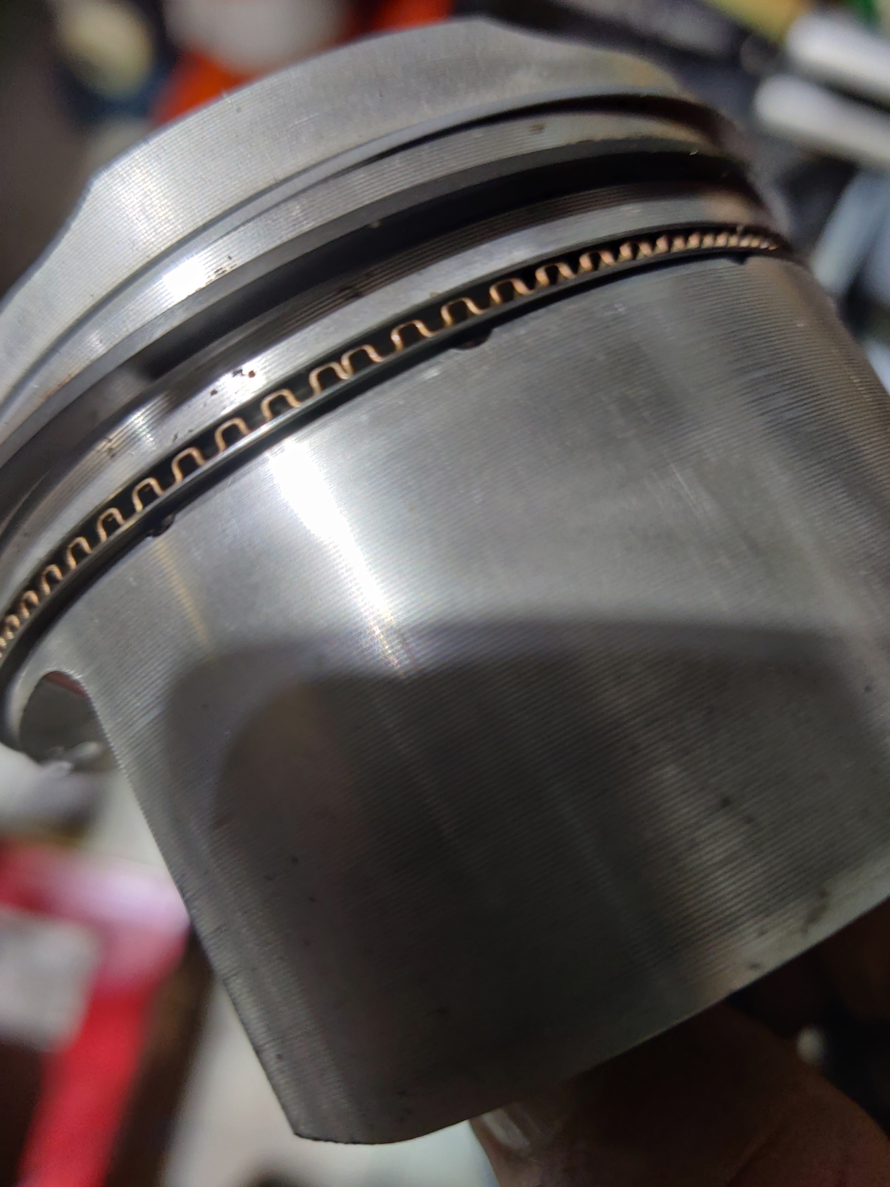 Le mien est en trois parties, deux segments très fin prenant en sandwich un extenseur qui les maintient dans la bonne position. (sur les segments d'origine, il s'agit d'un ressort, mais le principe est le même, la version en trois parties est sensée être plus performante -le fait qu'elle coute 10x moins cher que la version maserati n'a bien entendu pas influencé mon choix :lol: ).