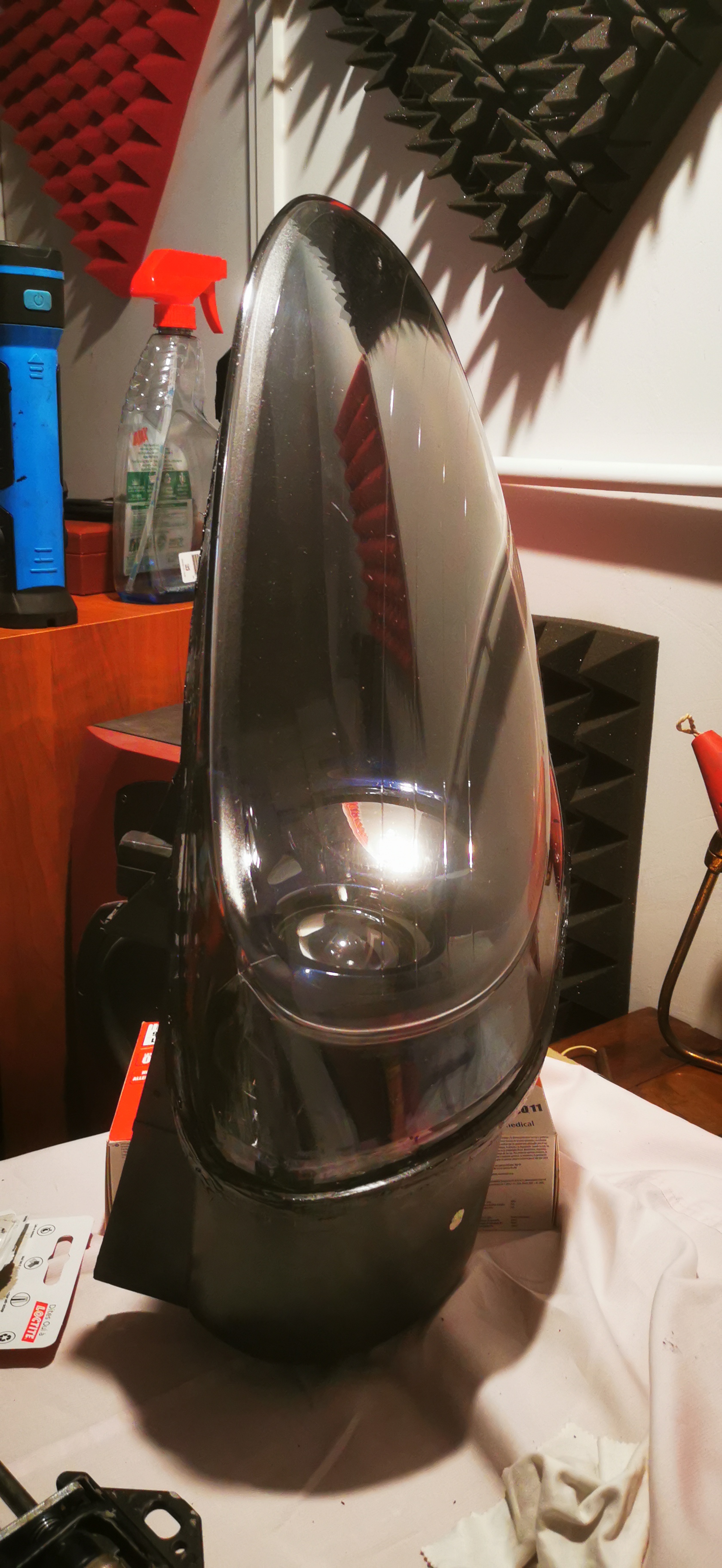 Déjà grosse galère pour les pièces, le garage n'ayant rien trouvé, je m'en suis chargé la semaine dernière. Quentin m'a trouvé un PC avec tout de même un peu de travail sur le dessous mais structure OK et un phare gris que je viens de transformer en bleu.. Parait-il que Maserati a une calandre et un diffuseur, à prix d'or bien entendu. On verra.