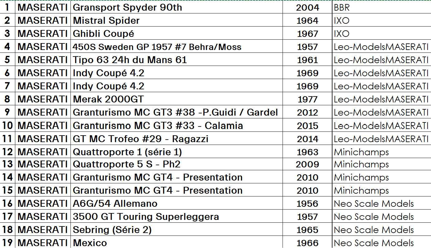 J'ai des modèles de Maserati 1/43 à vendre. Avant de les proposer à le vente sur Ebay, voici la liste. Prix préférentiel pour les membres de Maseratitude.