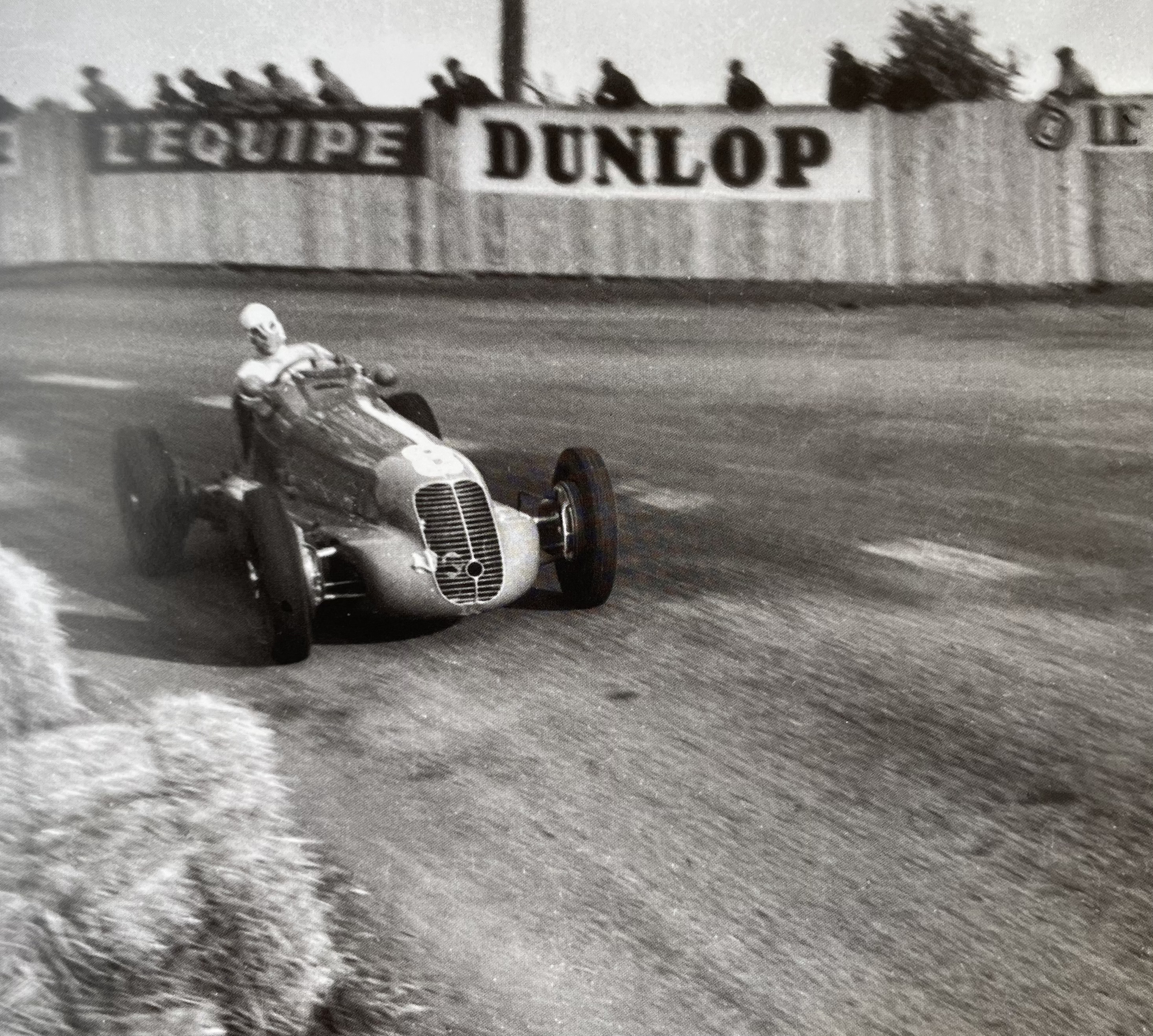 Jean Dieuzaide devint un photographe artistique très connu mais, dans l’immédiat après guerre, il avait gagné sa vie comme photographe sportif dans le sud-ouest pour le rugby, le football, la boxe, très peu la course automobile. Un magnifique livre rassemble ses très belles photos automobiles saisies aux Grands Prix de Pau et d’Albi dans l’après guerre, un temps où Maserati brillait par ses 4CL et 4CLT bien que la couverture de ce livre, que je recommande vivement, représente Louis Rosier au volant de sa Talbot Lago au Grand Prix d’Albi 1951 :