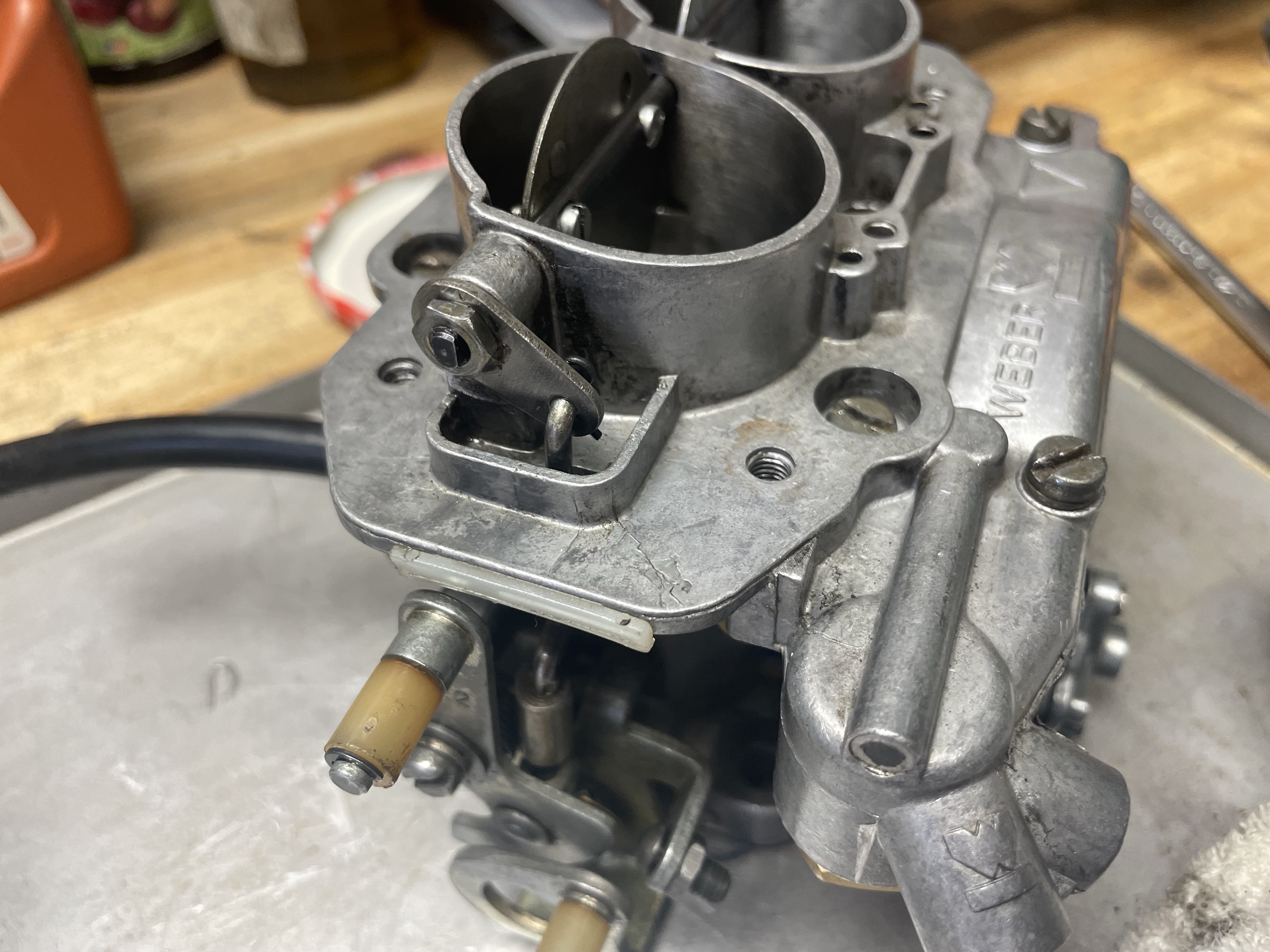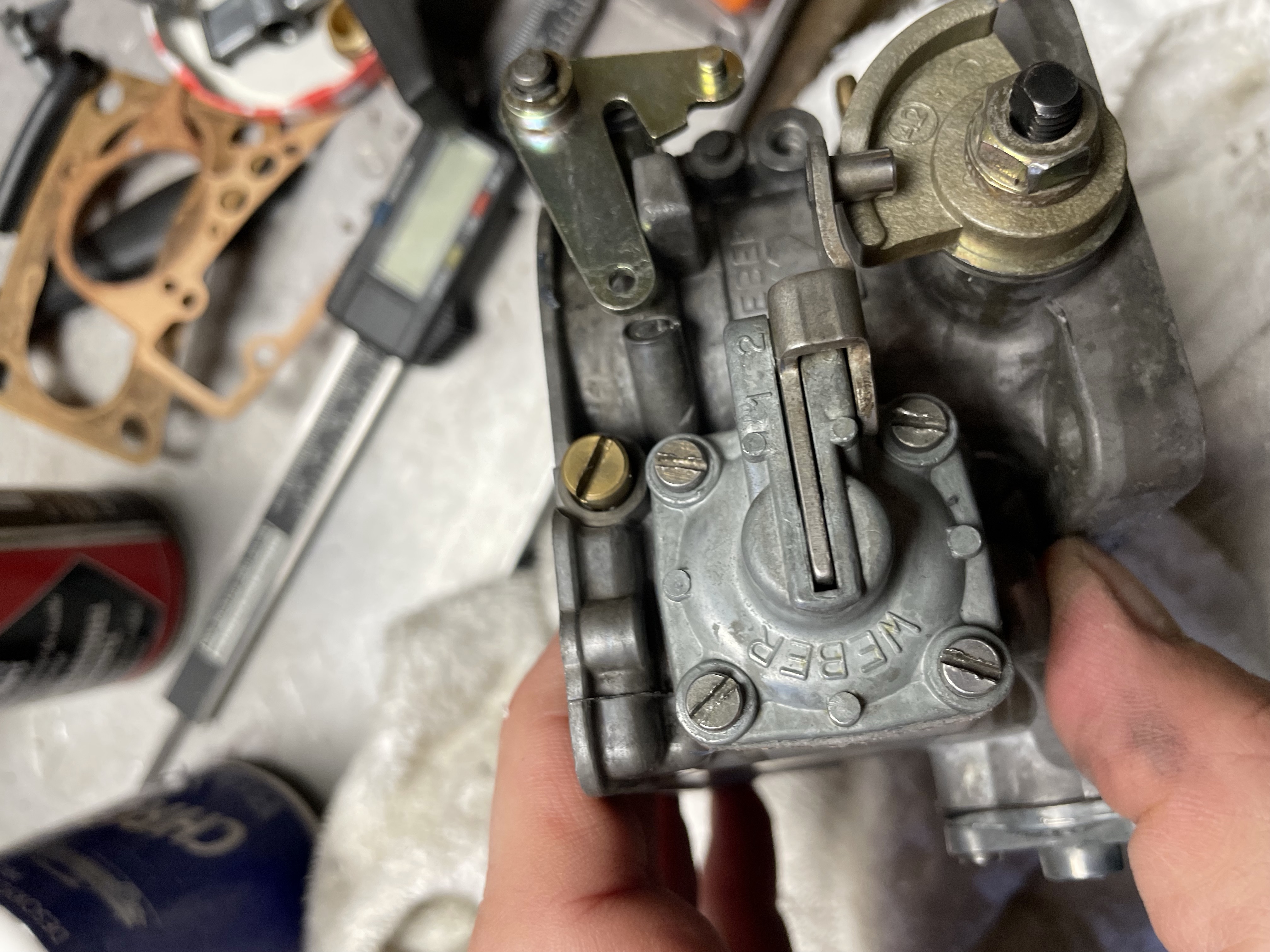 Après une première remise en état du carbu avec un kit de joints neufs et un nettoyage des gicleurs. La voiture fonctionnait assez correctement, jusqu’à ce qu’une saleté vienne boucher un gicleur en accélération… donc ré démontage, nettoyage des gicleurs et hop plus de problème. Mise à part que je trouve qu’elle pétarade un peu a l’échappement uniquement en décélération