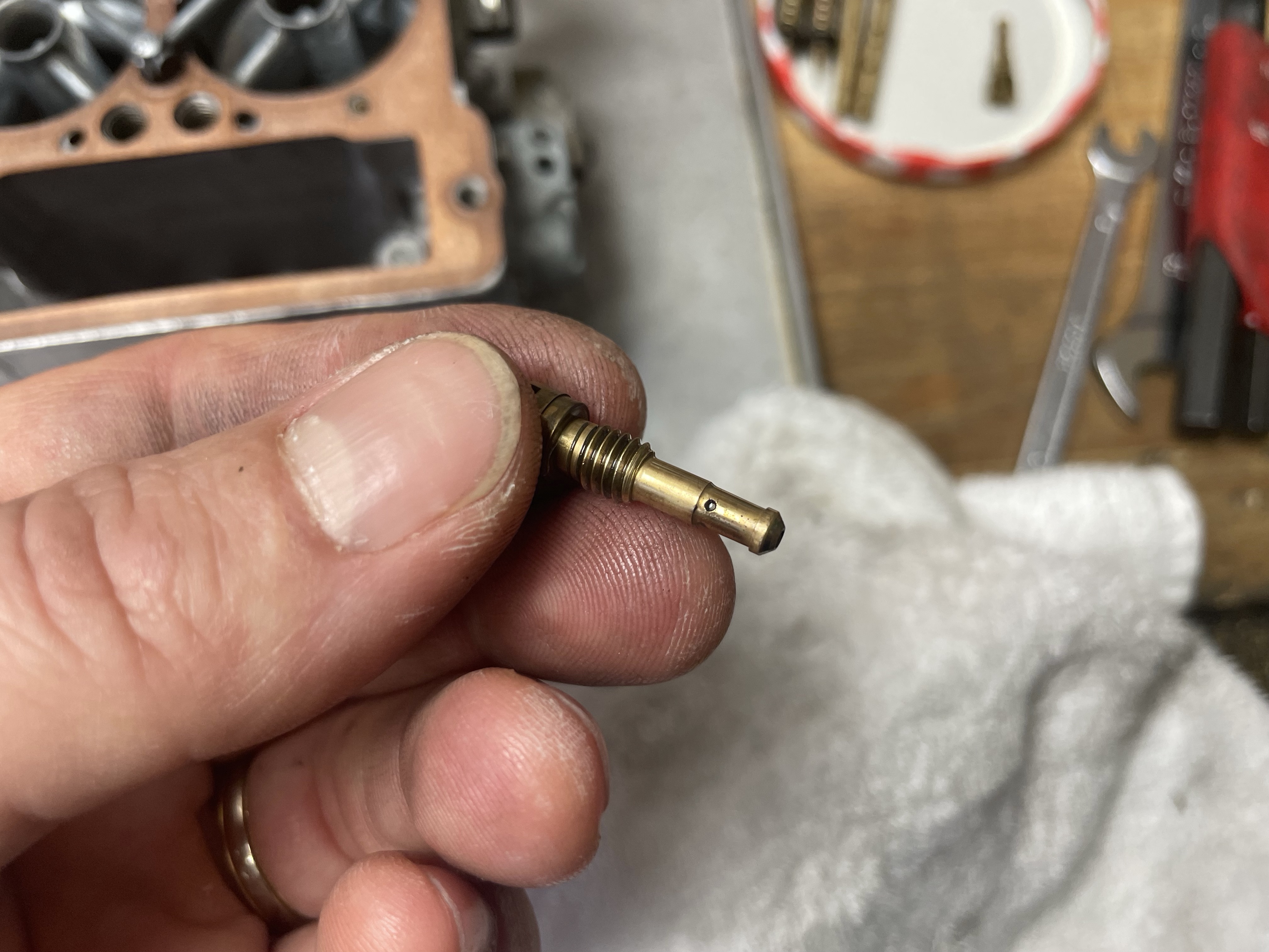 Au remontage, vous pourrez revisser complètement les pointeaux et les dévisser des valeurs notées (sur la mienne, le réglage correct au contrôle technique tourne entre 3.75 et 4 tours).