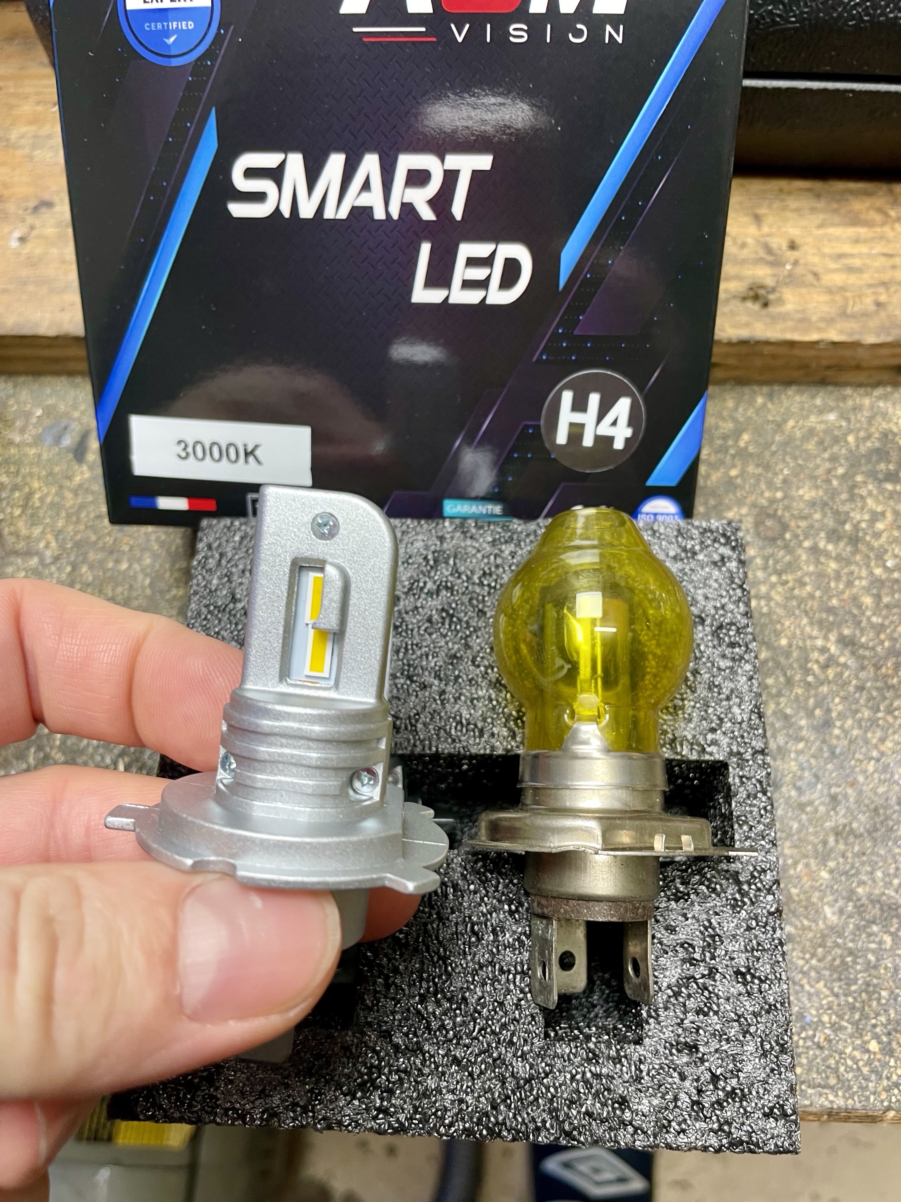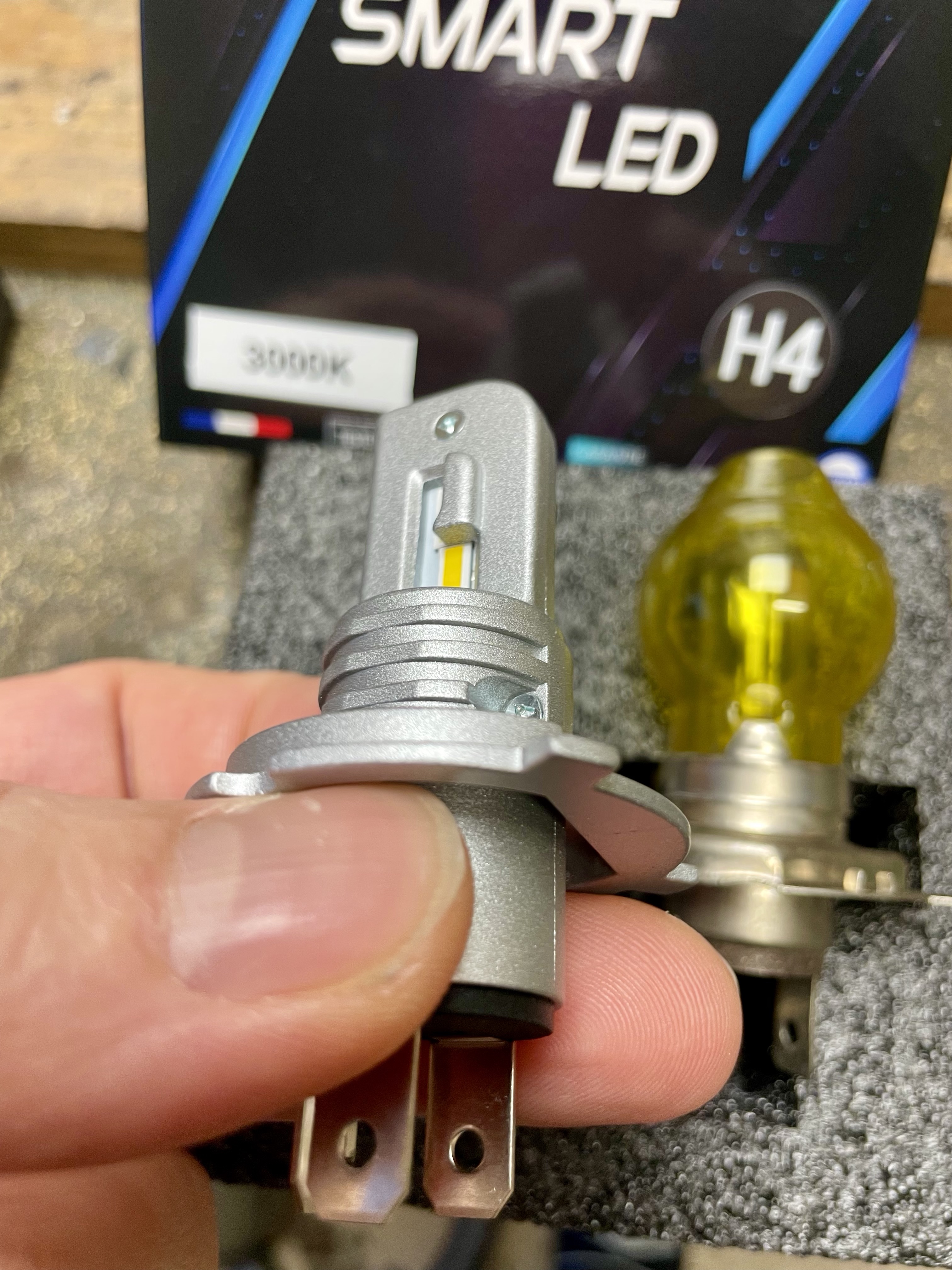 En effet, j’ai recherché un moment des LED H4 pour baisser la consommation des 4 phares avants, car avec presque 5A par fonction, rouler avec les phares prend trop d’énergie au pauvre alternateur d’origine…