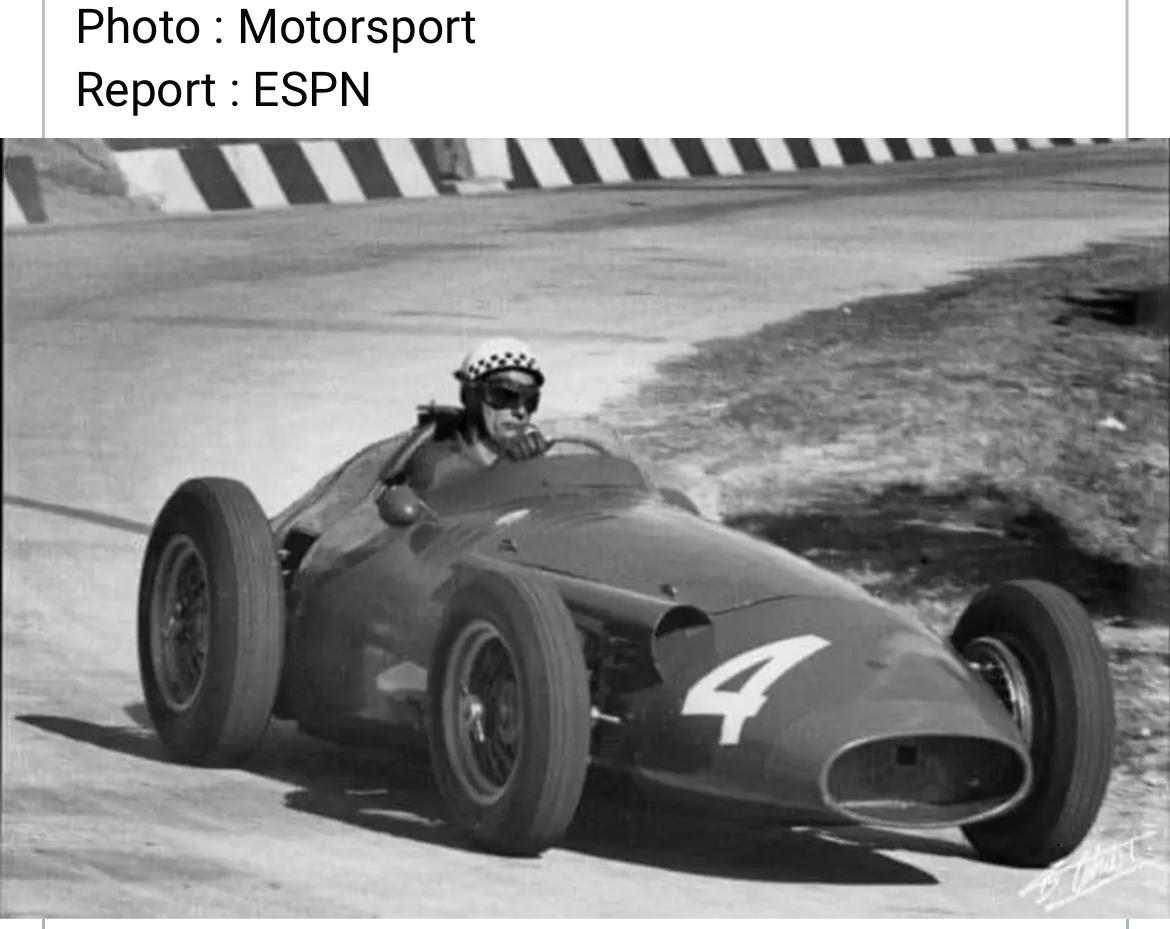 Pour rester en 250F, Jean Behra et son fameux casque à damiers au Grand Prix de France à Rouen en 1957 :