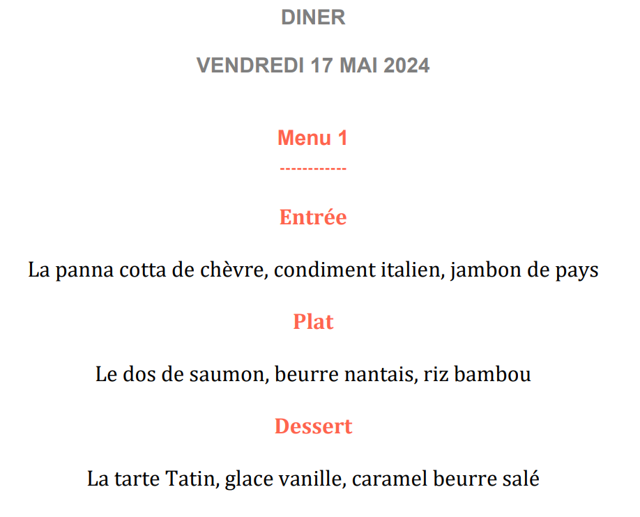 Il restera à joindre le menu prévu pour le déjeuner à Chenonceau.