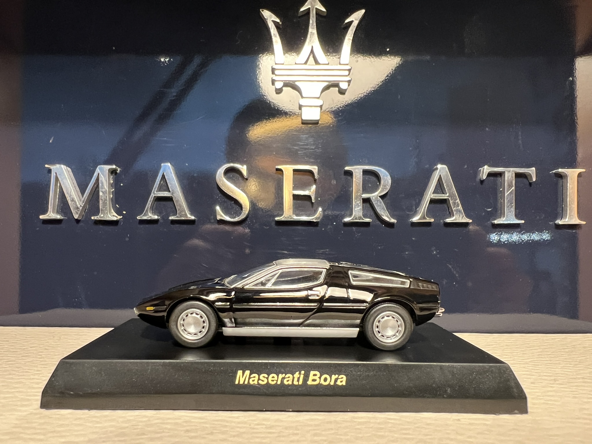 Bora- Minichamps : Ghibli Spider- Minichamps : Gransport Trofeo- IXO : Les voitures sont neuves, sous vitrines et surboites en carton. Produits officiels Maserati.
