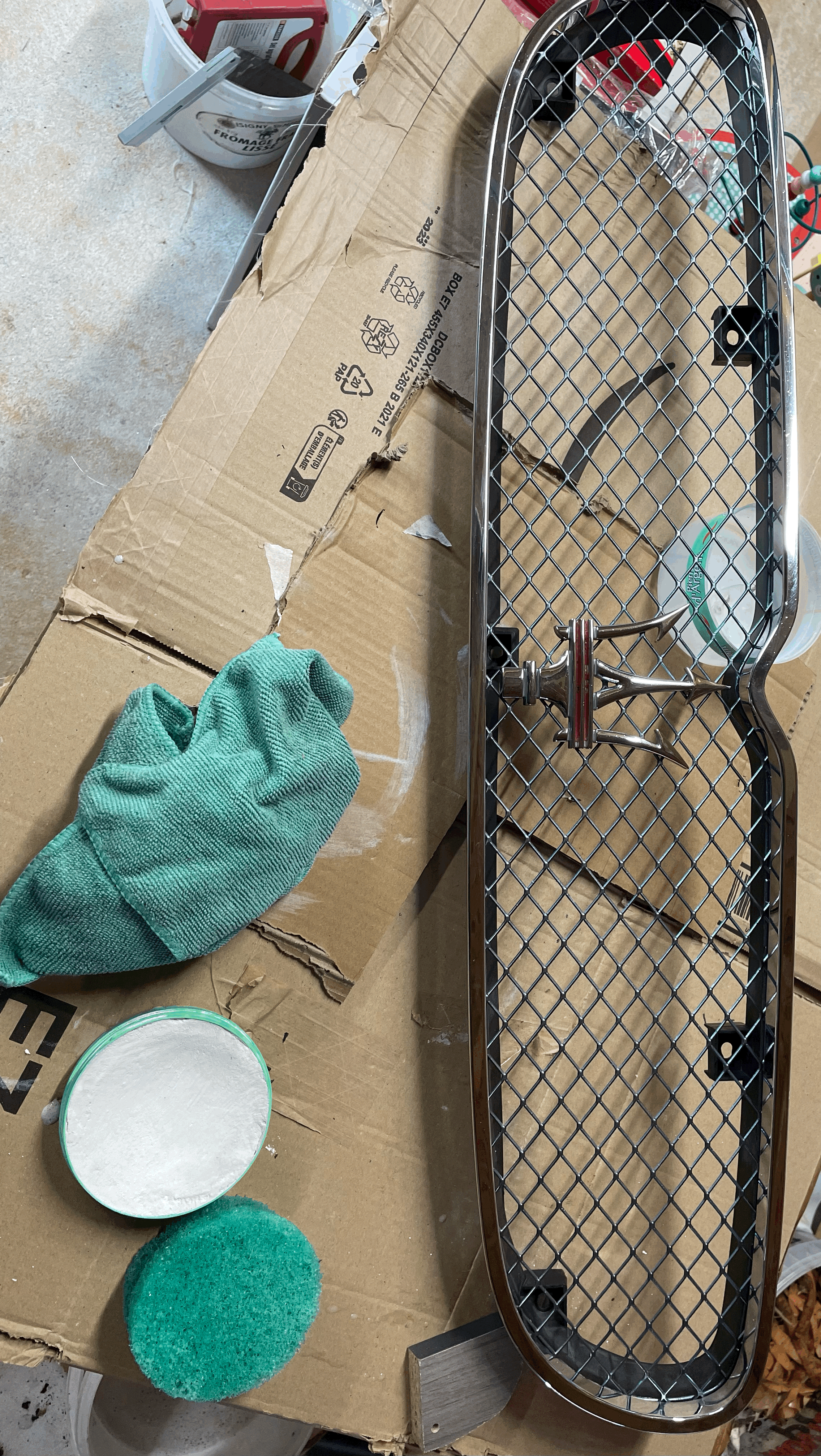 Hier je me mets à démonter la calandre afin de la nettoyer à la pierre d'argent!