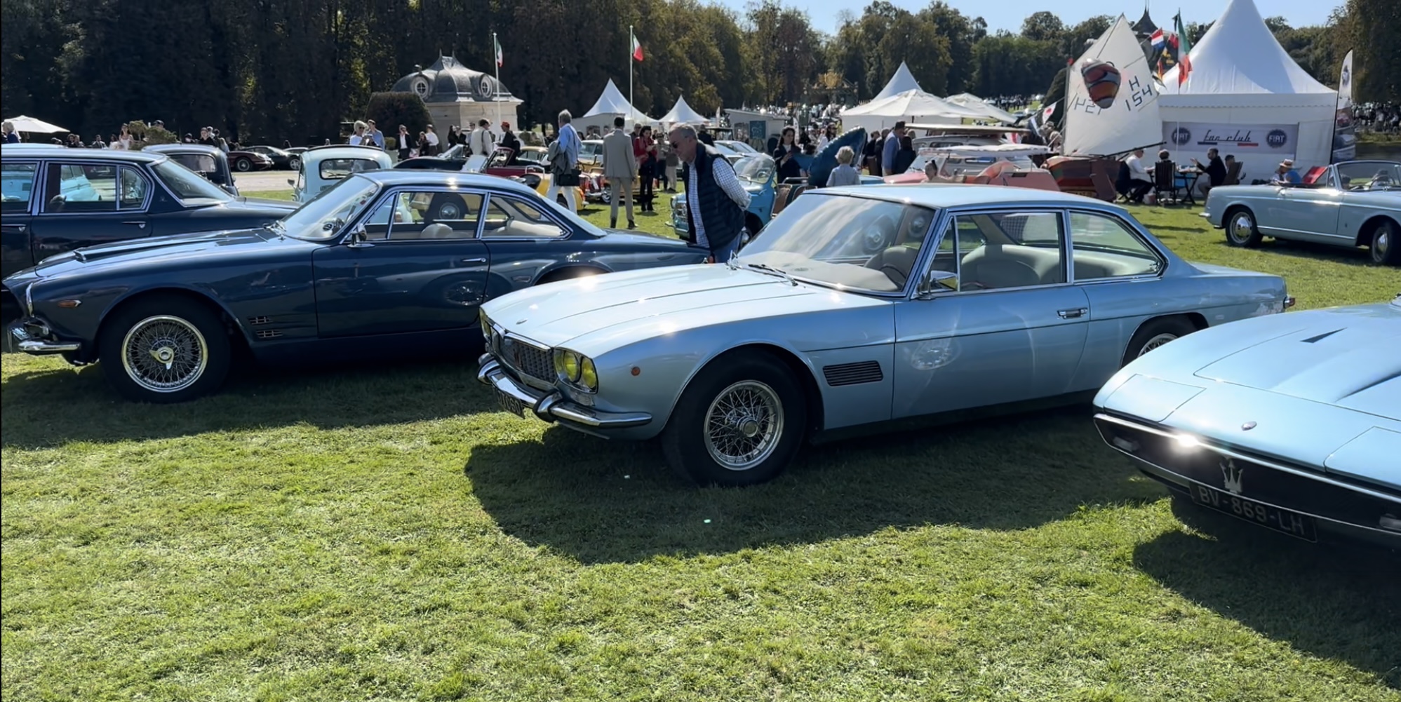 La suite en bleu avec la Mistral 4.0, les deux soeurs jumelles Ghibli 4.7 et Ghibli SS , la Mexico 4.2 et de face, la seconde Indy, elle aussi Argento Auteuil qui est une 4.7 America