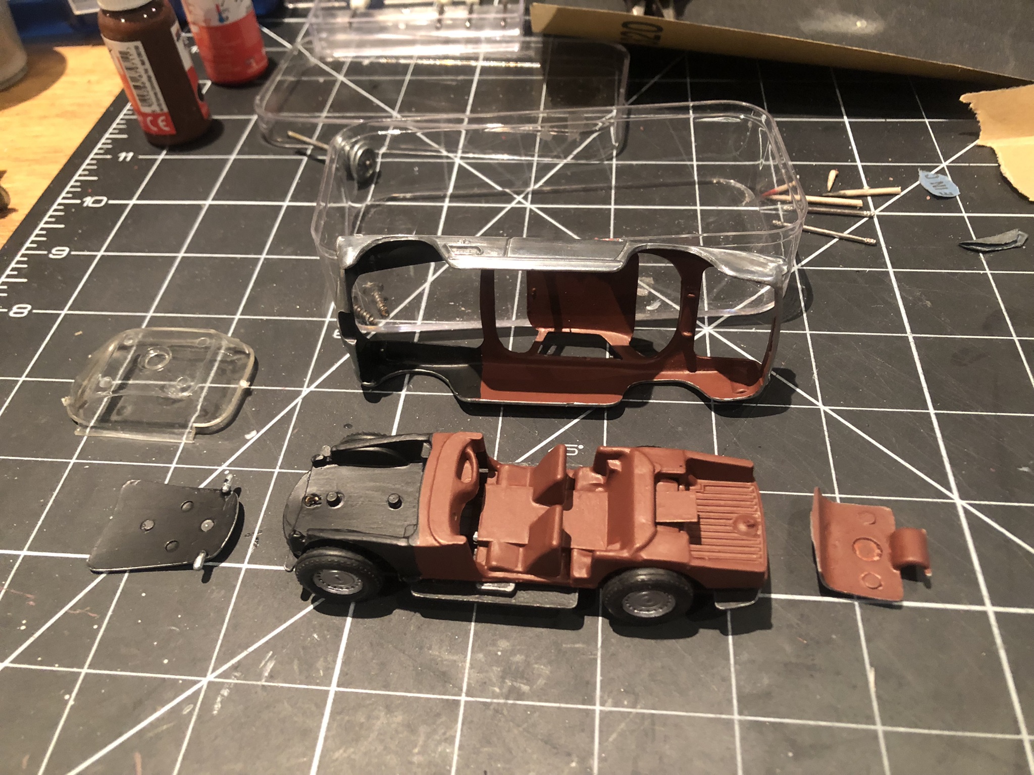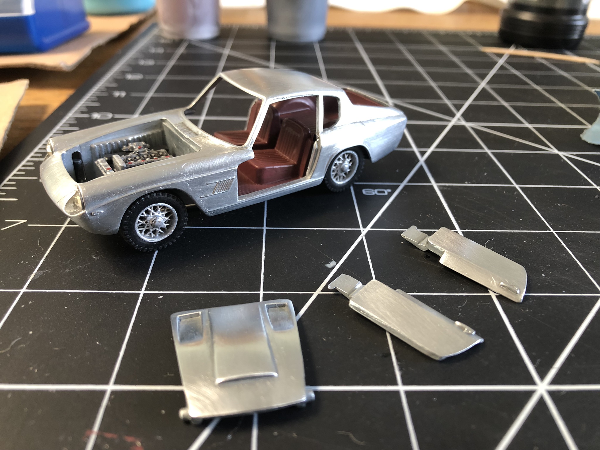 J'ai pas mal à faire encore avant de vernir : reprendre les détails des phares, radiateur, poignées, events...