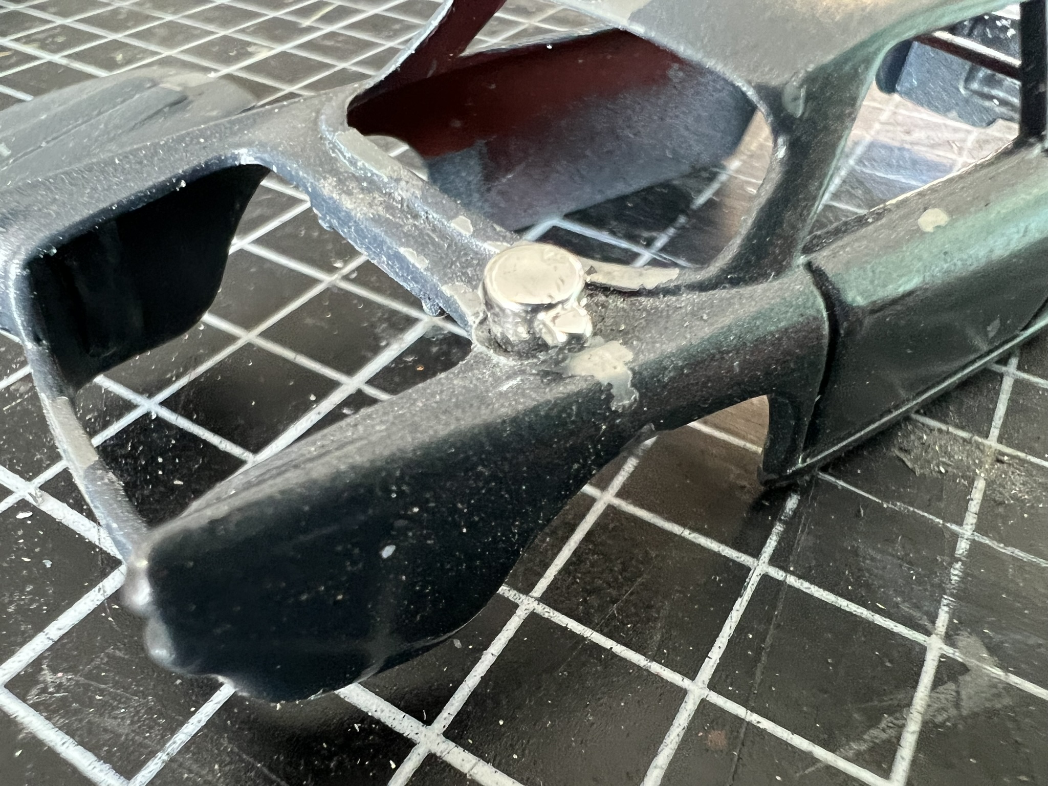 Autant en profiter pour ajouter des détails, comme le bouchon du réservoir, récupéré sur une Tipo 61. Un trou à la Dremel plus tard, ça rentre bien ;-)