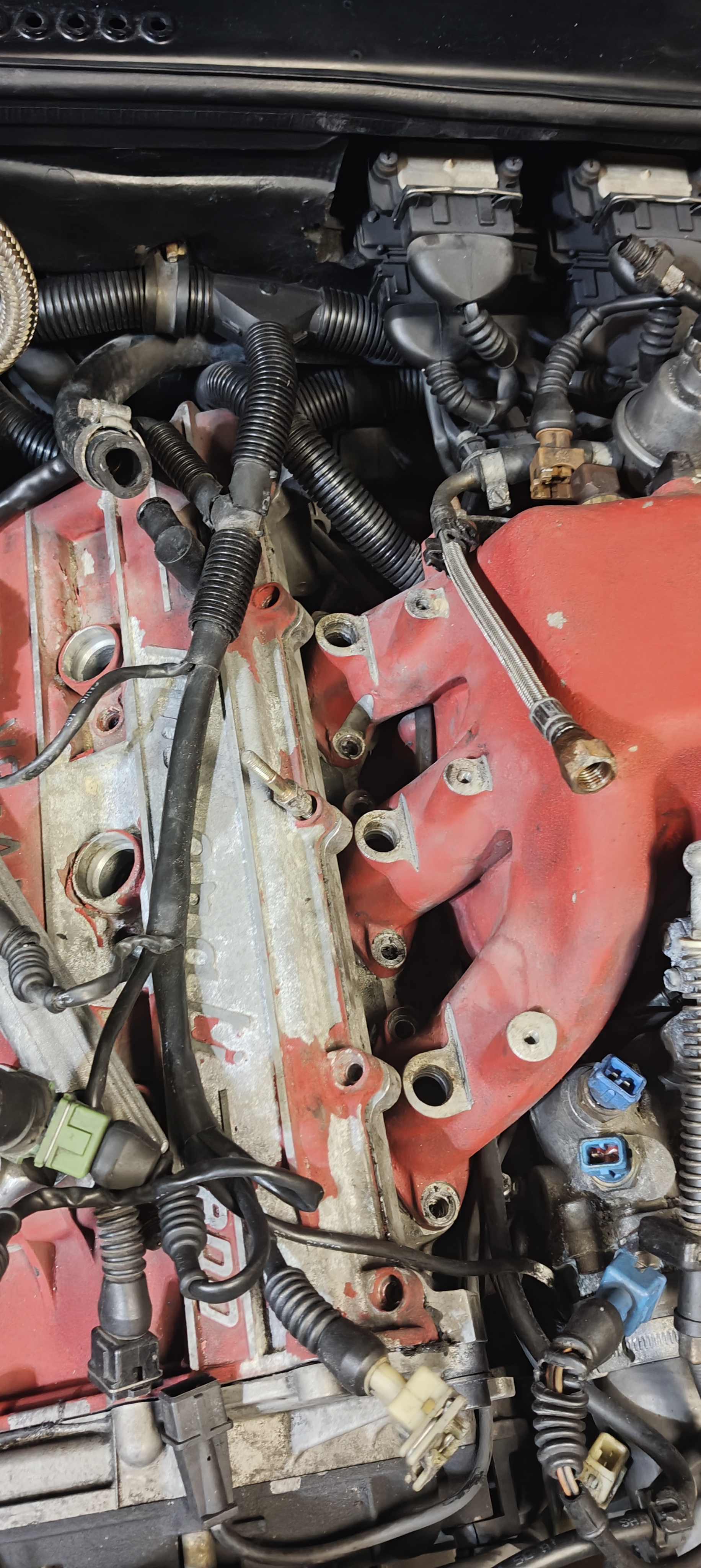 Rien de bien compliqué pour retirer le plenum, faut juste débrancher quelques fiches, déboiter les injecteurs et enlever les rampes et détacher quelques durites à l'arrière.