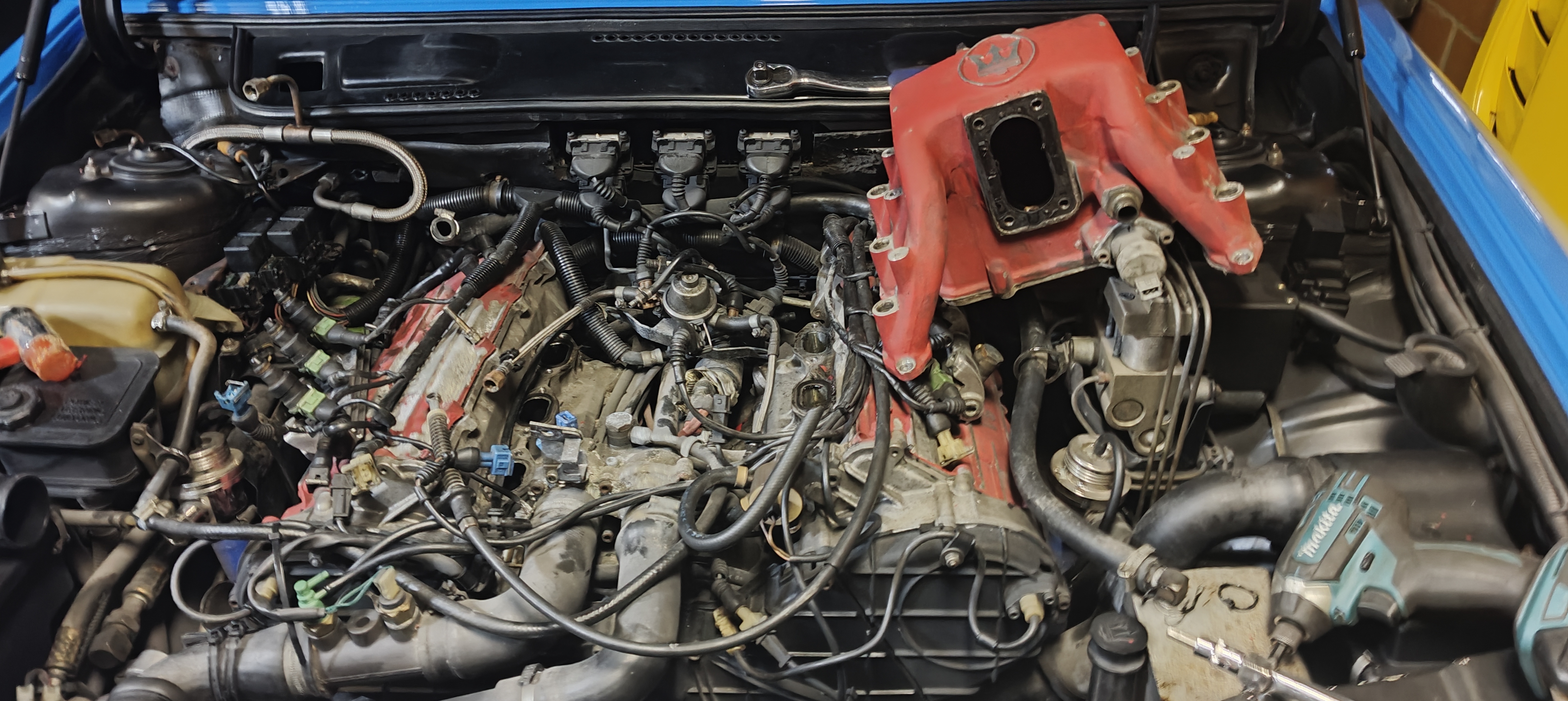 Ca avance bien et rien de bien compliqué, je me dis quand même que j'avais un peu négligé la ghibli ces dernières années, et qu'il était grand temps de s'en occuper, elle a de loin la baie moteur la moins présentable. Et pourtant j'avais fait la distri juste avant de la déposer chez le carrossier.