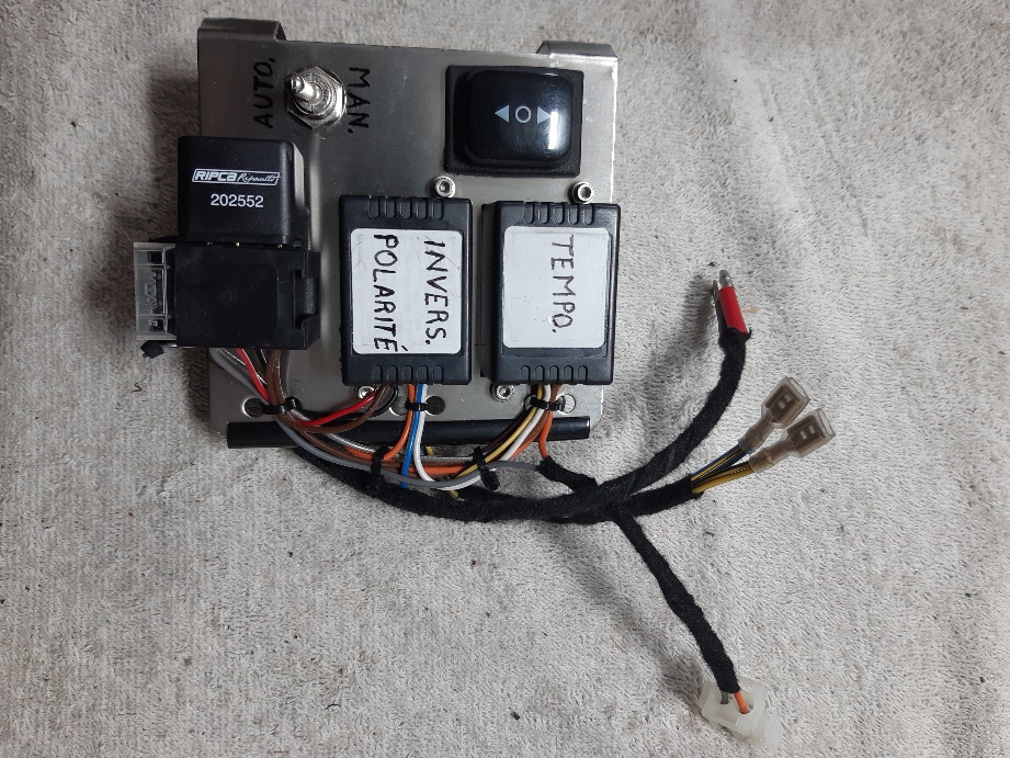 Avec des composants existants c'est assez simple, il faut du fil de plusieurs couleurs en 1 mm2, des fiches, un temporisateur réglable, un inverseur de polarité, un relais et un petit porte-fusible avec fusible 2A, question de sécuriser notre installation.