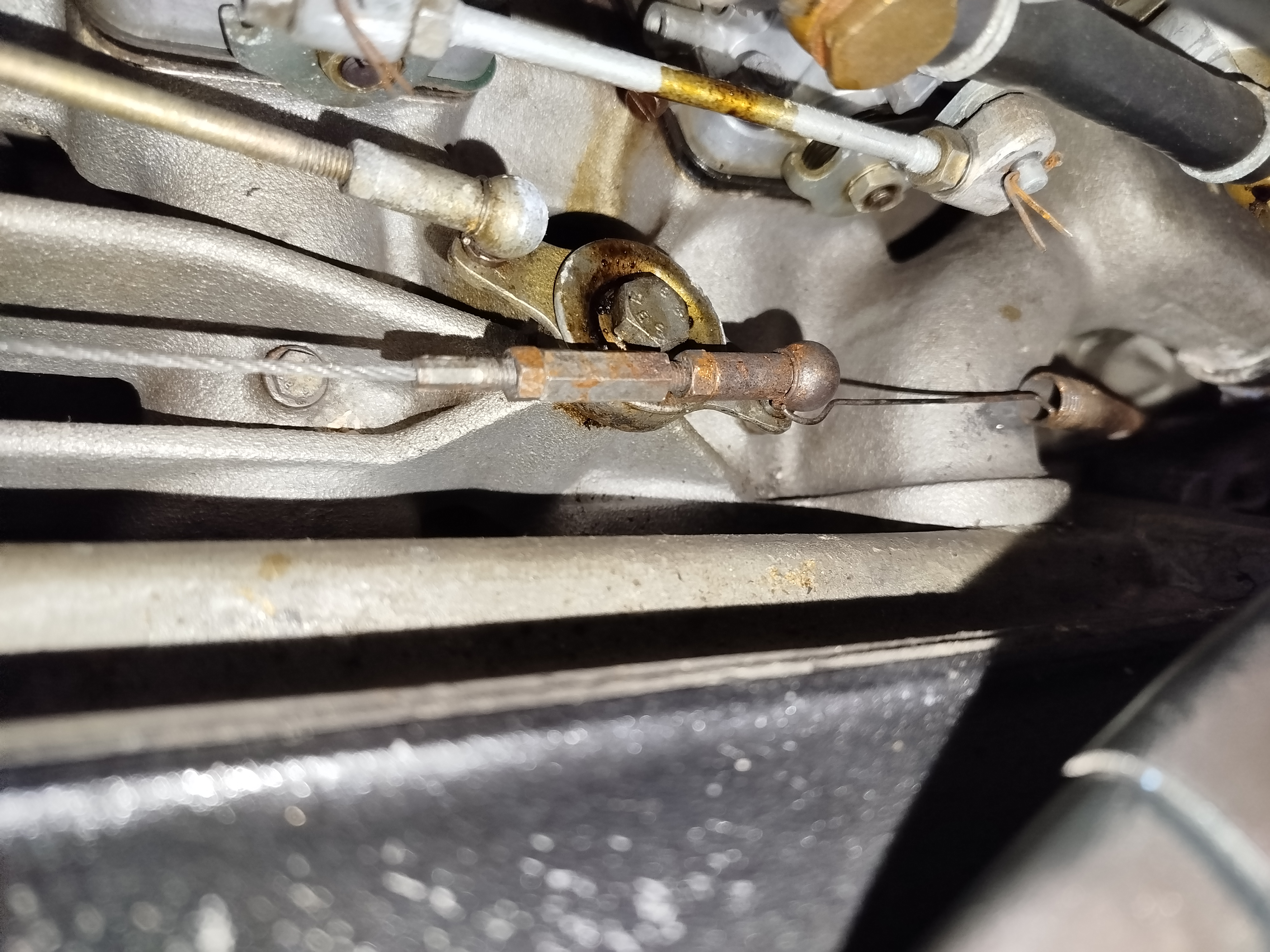 Sauf à ce que je réussisse à désolidariser l'extrémité du câble de sa fixation (rotule/boulon) au levier pour travailler plus confortablement sous la voiture.