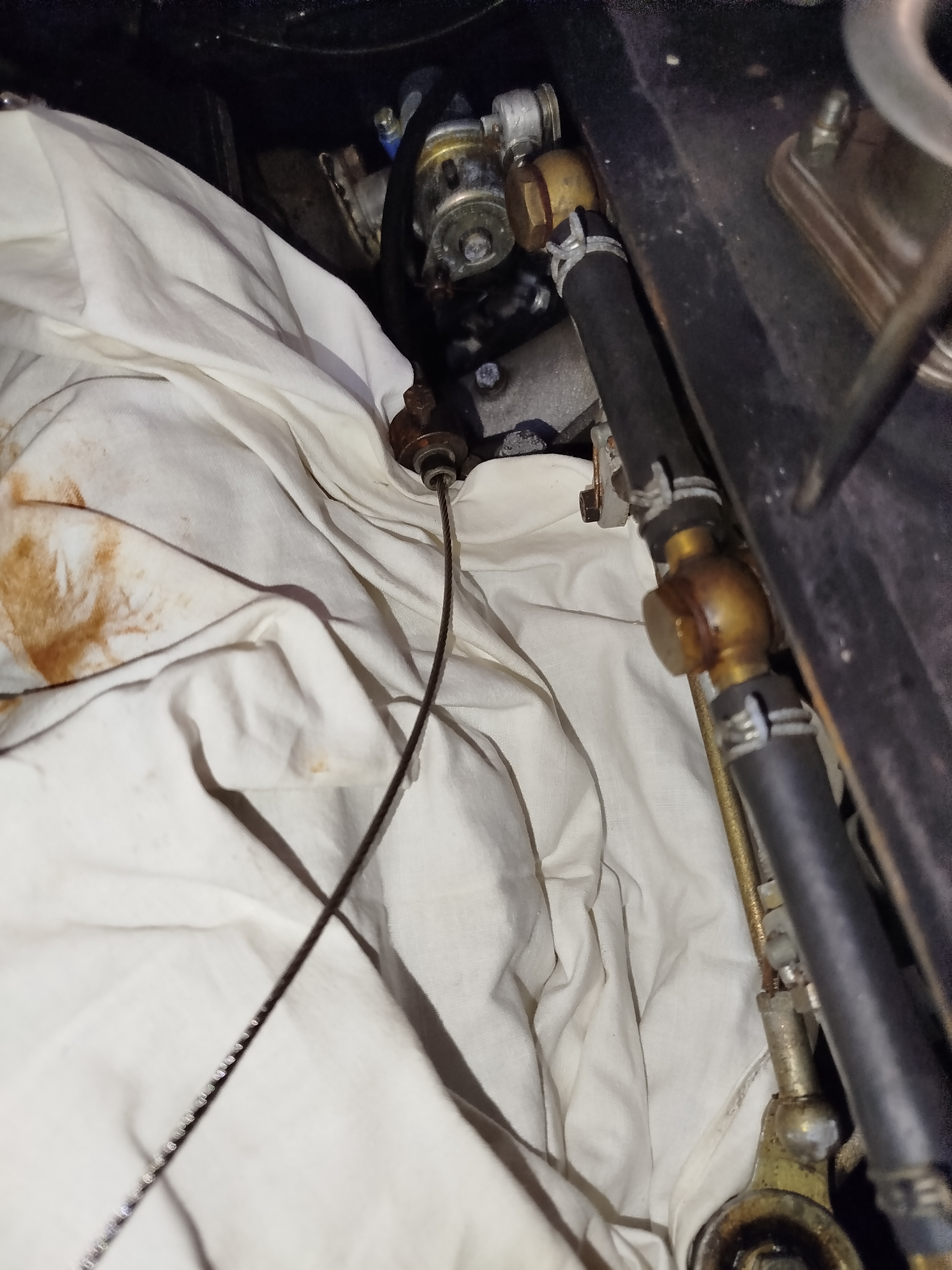 Le juge de paix sera le coulissement de la partie rigide de 5 mm de diamètre, j'attends d'y retouner pour d'abord défaire l'assemblage sur la noix inférieure, difficile d'accès et qui a manifestement subi la corrosion, c'est là que le câble a cassé...