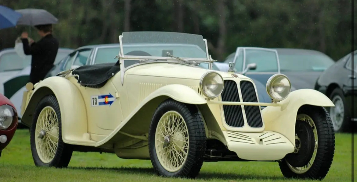 La 4CS #1114, carrossée par Brianza à Milan, fut construite en 1932 et équipée initialement d’un moteur 4 cylindres en ligne compresseur de 1100 cc délivrant 90 cv amenant les 700 kg de l’engin à 150 km/h :
