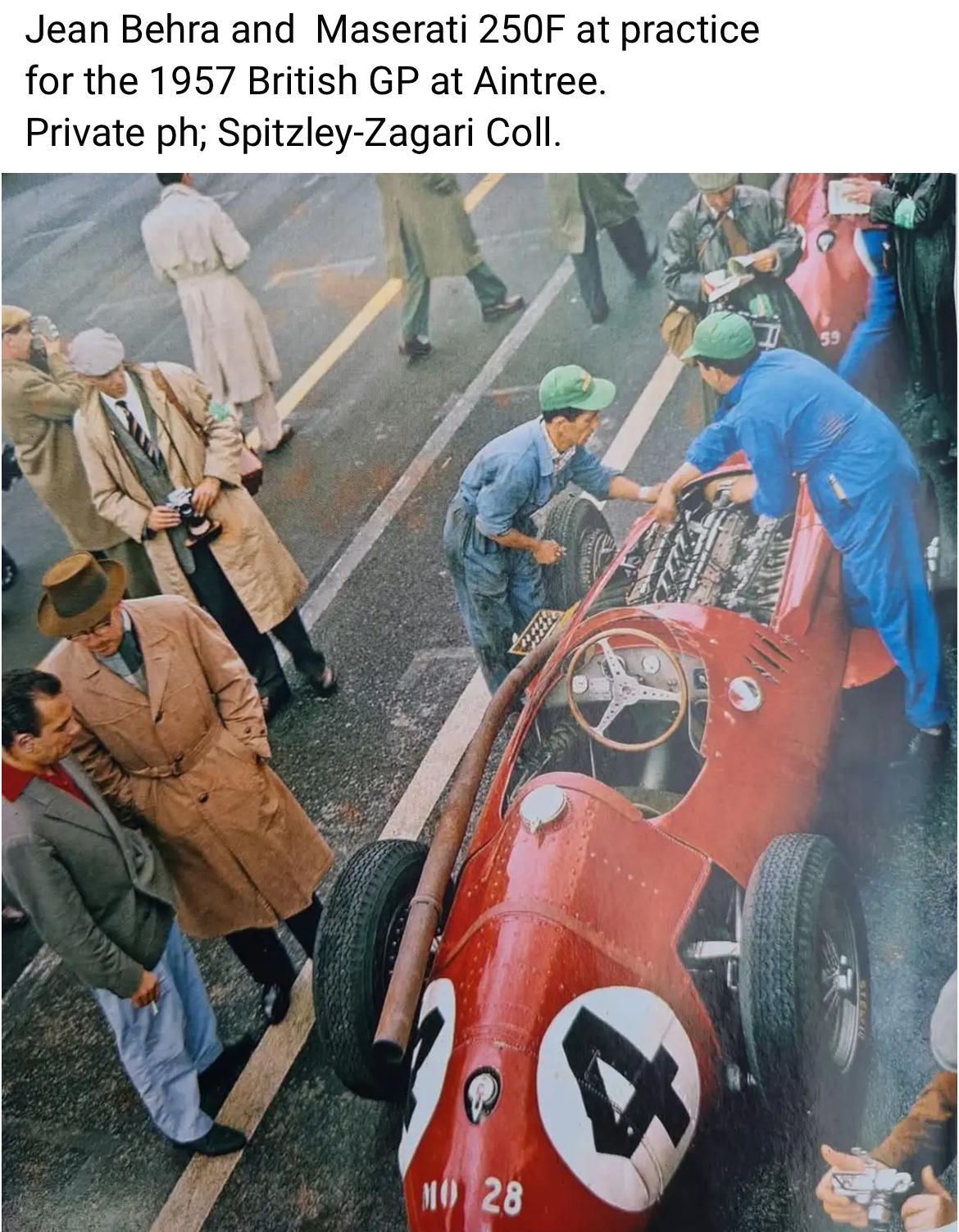 Jean Behra est en chemise rouge à gauche.