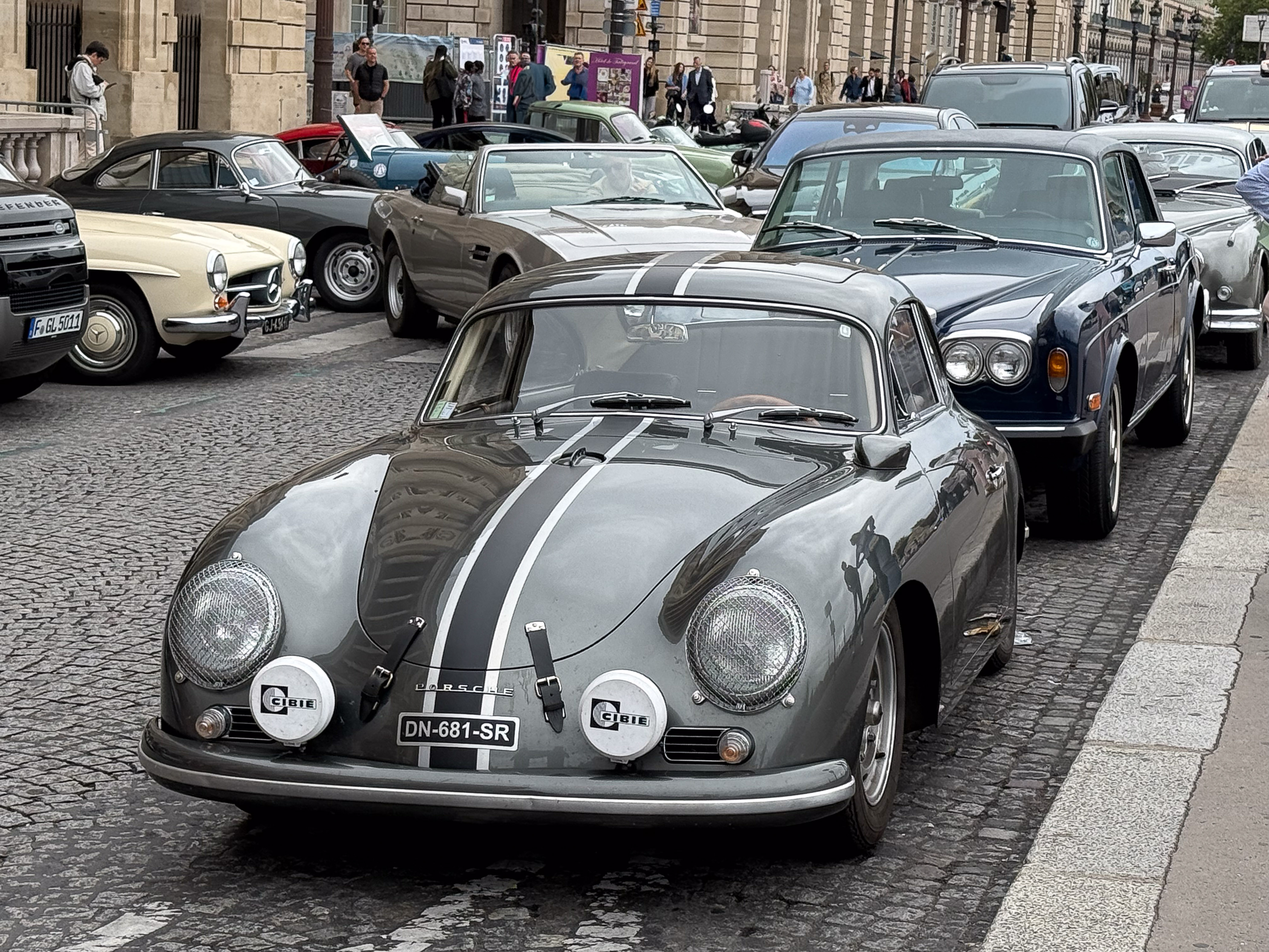Quelques voitures aux Invalides avec La traversée de Paris.