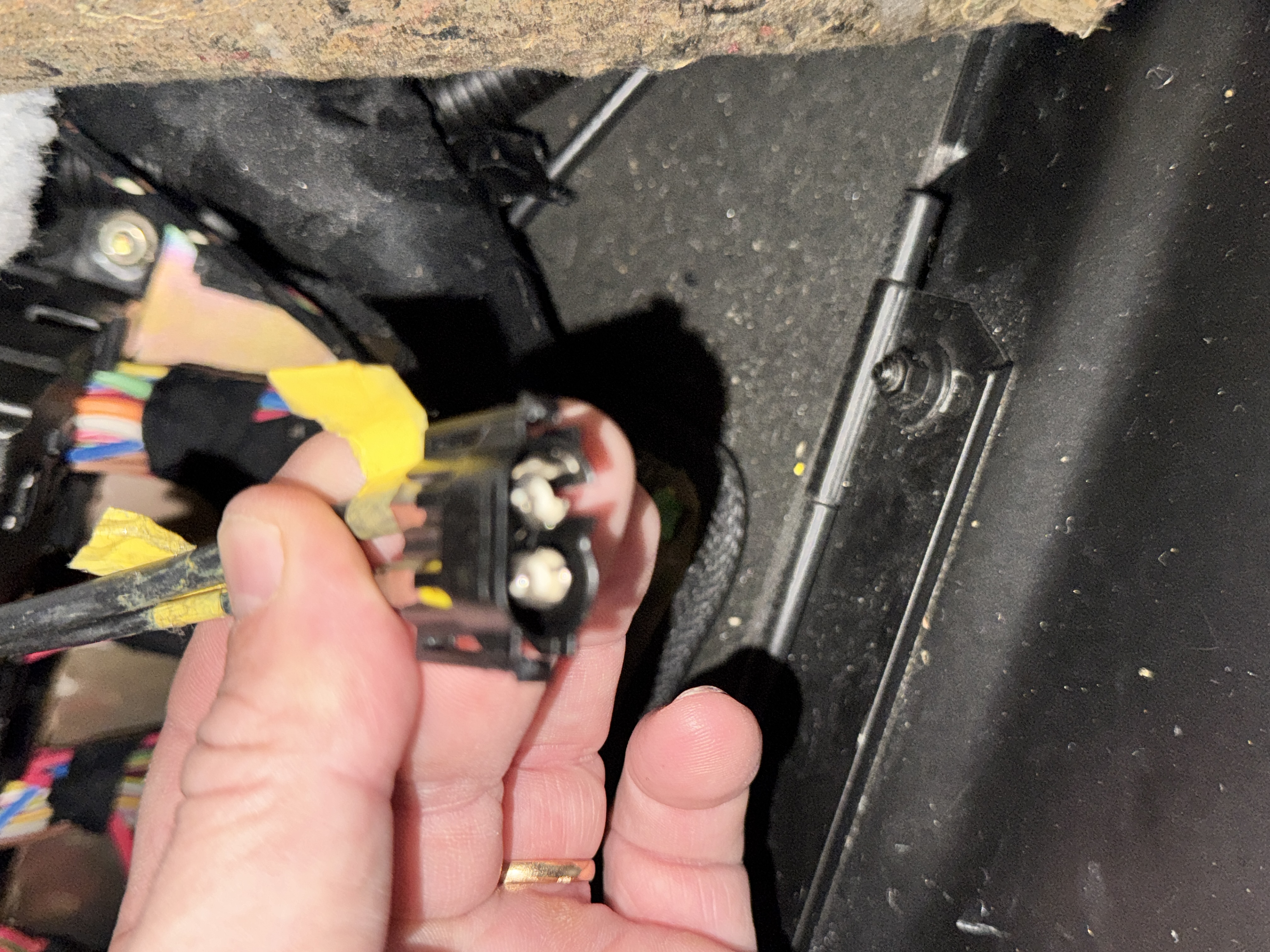 Merci ! J’ai ouvert à nouveau la trappe sous la boîte à gant et trouvé ce câble déconnecté … je ne sais pas à quoi il correspond et vu l’accès impossible de savoir où il se connecte… pas trouvé en tout cas en me contorsionnant !
