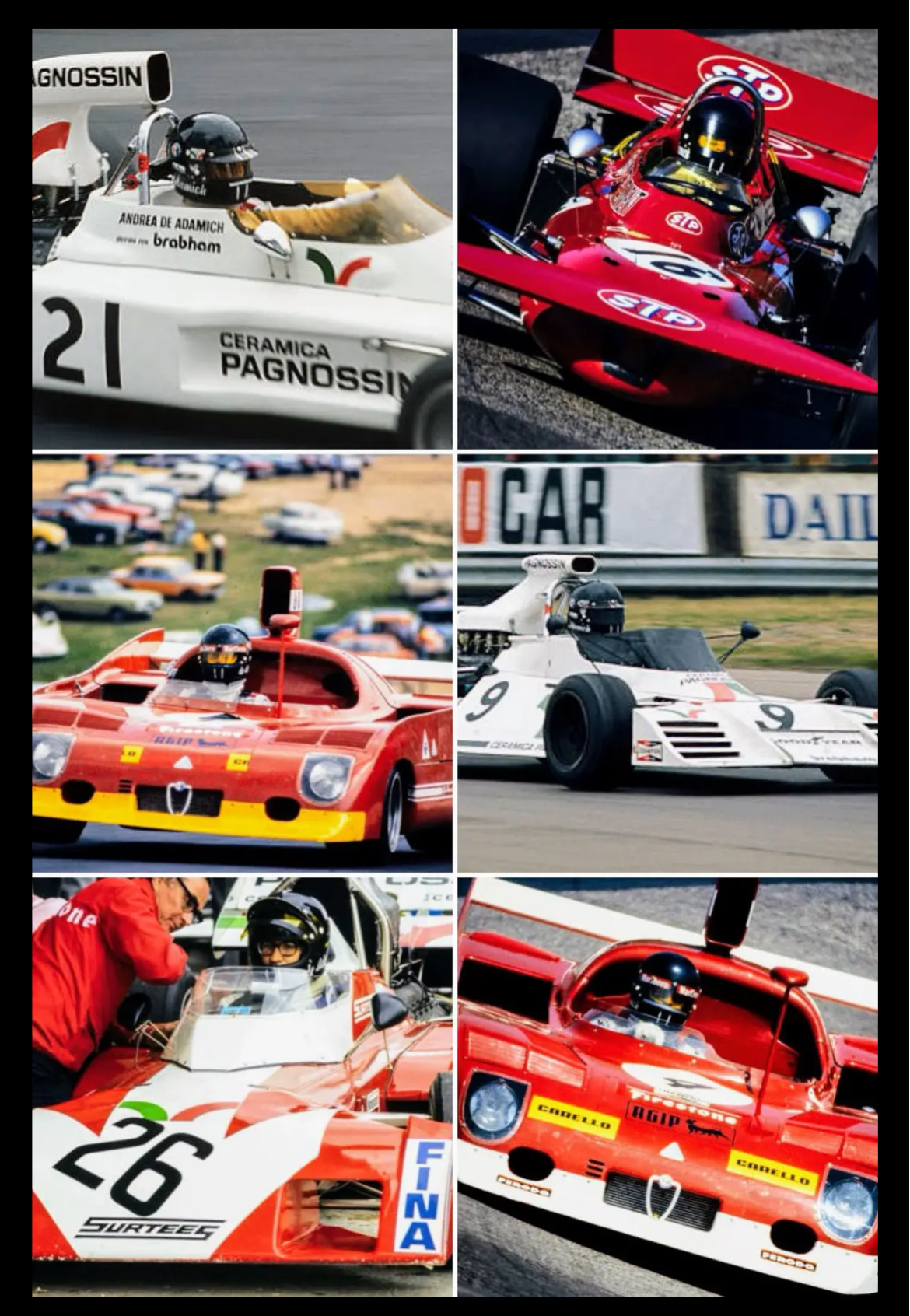 Affecté d’une assez forte myopie, Andrea De Adamich était surnommé ´le pilote aux lunettes’’, mais cela ne l’empêcha pas d’accéder à la Formule 1 : Paix à son âme et un grand merci pour l'enseignement apporté à des centaines de pilotes amateurs ou professionnels.