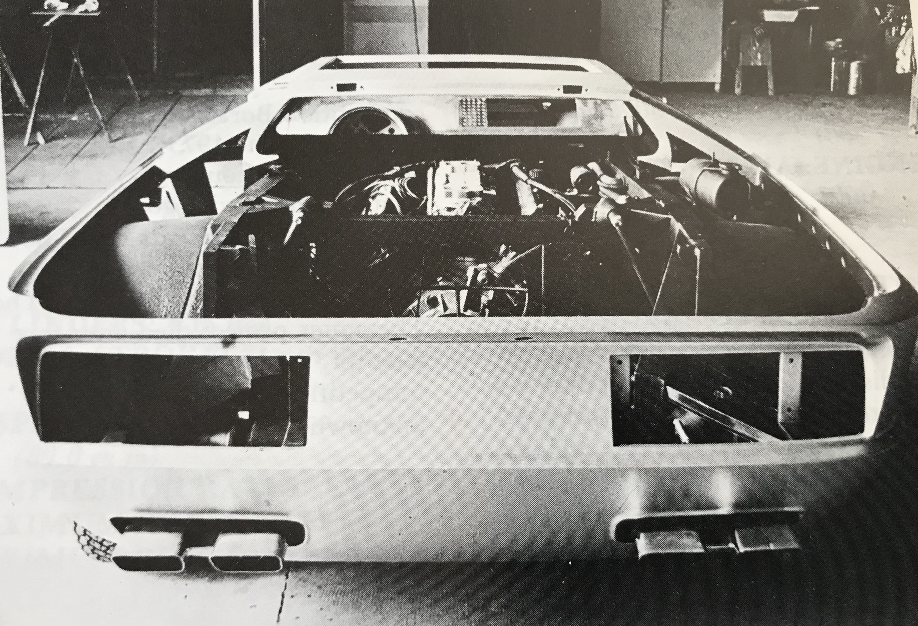 Voici une autre exceptionnelle photographie de la Boomerang en cours de motorisation lors de l'hiver 1972. Notez le vase d'expansion du liquide de refroidissement en haut à droite et le volant encore traditionnel :