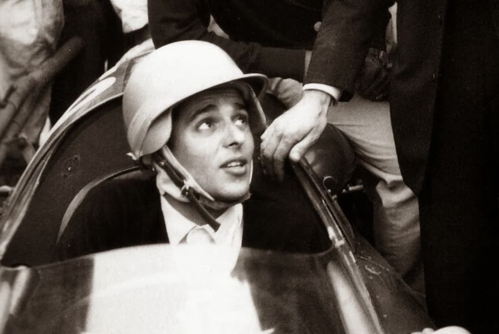 Elle ne put prendre part au Grand Prix de Monaco 1958. Stirling Moss tente de la consoler à l'annonce des résultats des essais : Les mêmes protagonistes aux festivités des 100 ans de Maserati en 2014 :