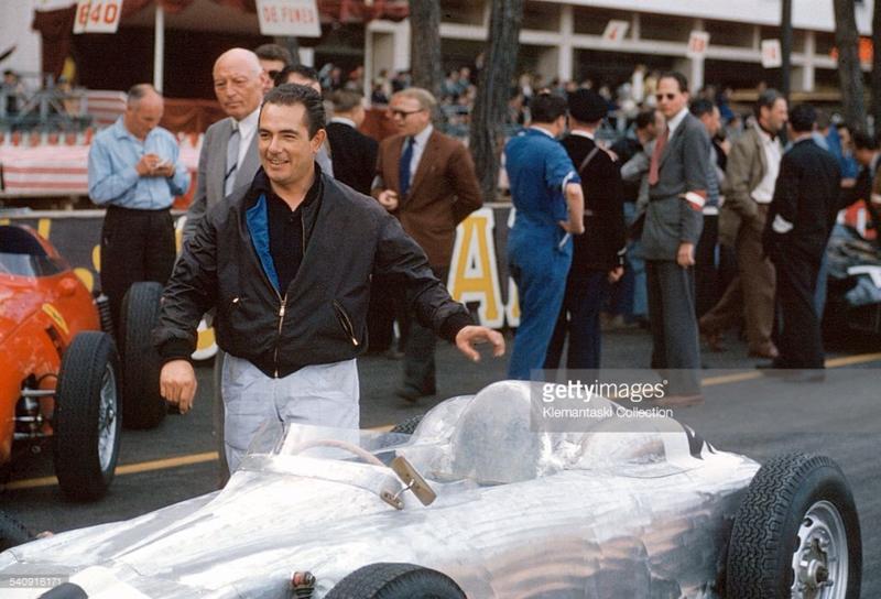 Jean Behra dans la Behra-Porsche : Cette voiture était très moderne avec son châssis tubulaire et son moteur Porsche Boxer 4 cylindres type RSK en position centrale arrière. Valerio Colotti, célèbre "ingénieur châssis" Maserati, avait conçu cette Behra-Porsche construite dans les ateliers De Tomaso à Modène (à la fin des années 50 et de sa carrière de pilote, Alejandro De Tomaso construisit des voitures de courses avant de connaître le succès avec ses voitures de tourisme à moteur Ford V8)