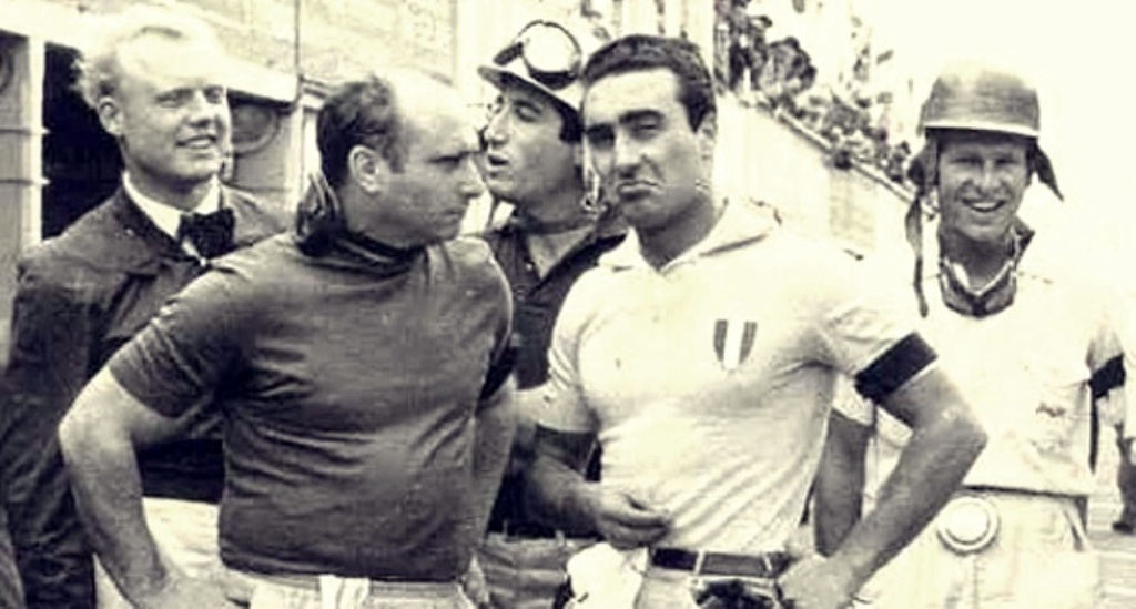 J'aime beaucoup cette photo : on y voit Juan Manuel Fangio à gauche, Jean Behra au centre et Maria Teresa De Filippis à droite :