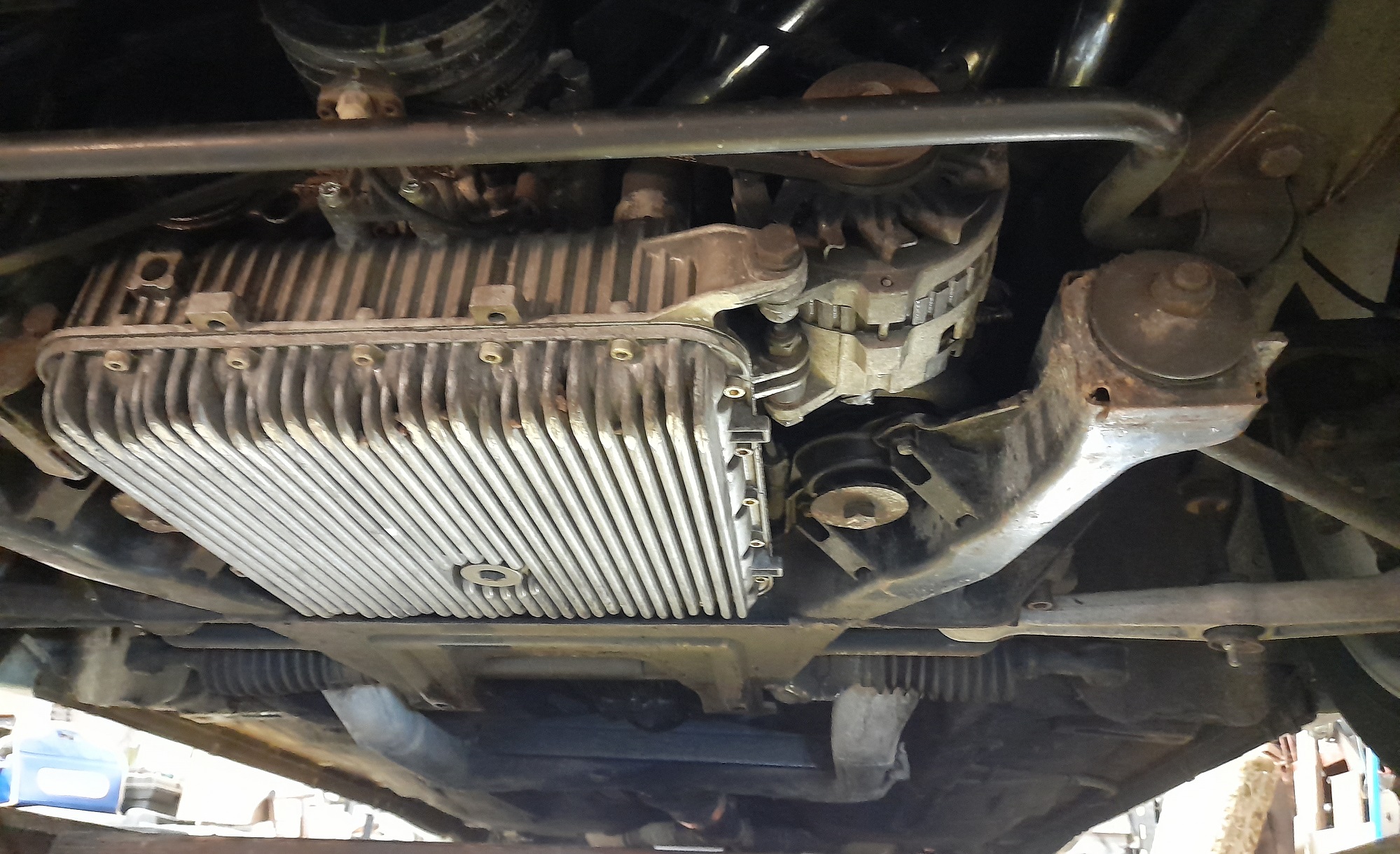 En plaçant un niveau sur le bas du carter (donc parallèle au berceau moteur), je dois maintenant avoir une différence de niveau de moins d'un cm entre le bas du carter et le bas du berceau, c'est assez facile à contrôler sans même lever la voiture.