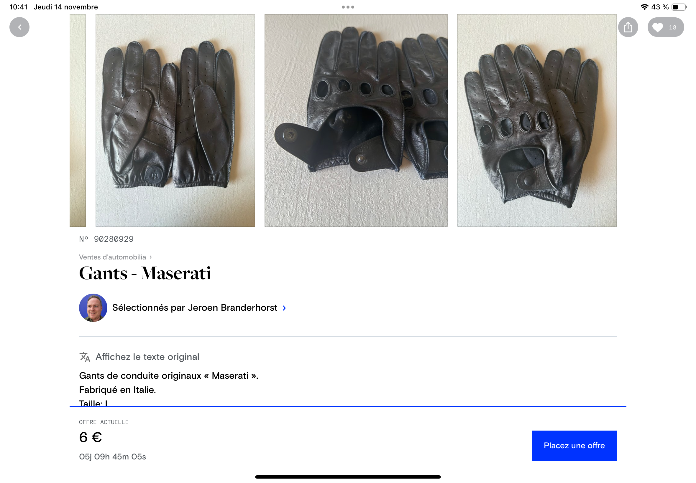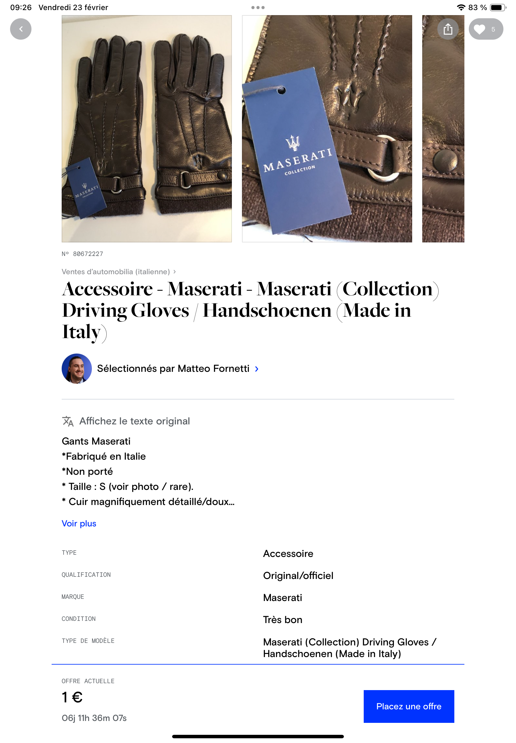 Une paire de gants Maserati sur Catawiki :