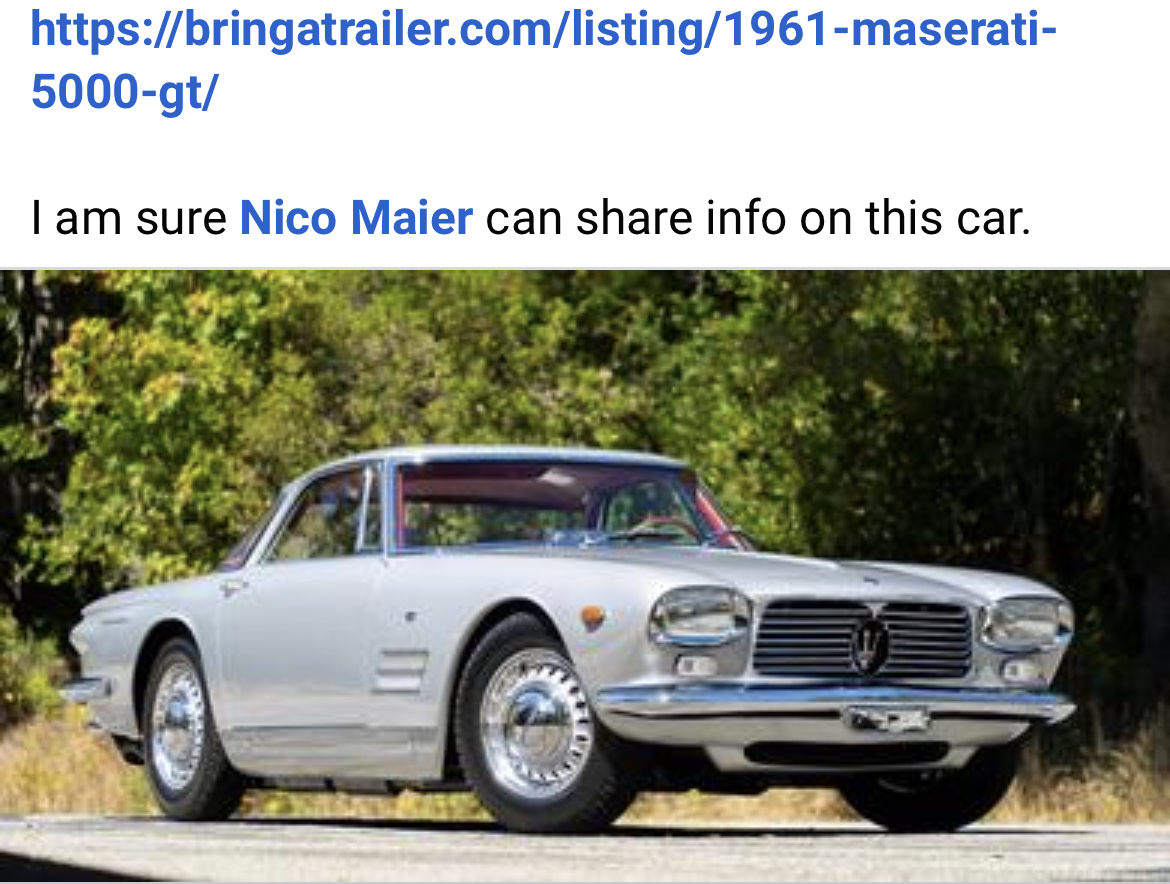 C’est vrai qu’elle est sublime la Ghibli. L’évolution stylistique entre le début et la fin des années 60 est incroyable. Je pense que dans l’histoire de l’automobile, c’est le moment où le changement a été le plus rapide. Dire que la 5000GT Allemano ci-dessous c’était 5 ans avant la Ghibli ! Certaines ont même été construites 1 an avant les premières ghibli de 1966 !