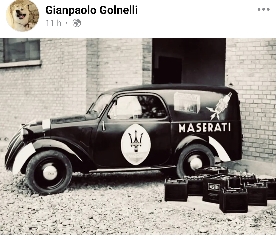 Là par contre, photo rarissime d’une camionnette Fiat Topolino Furgoncino de livraison de batteries et bougies Maserati :