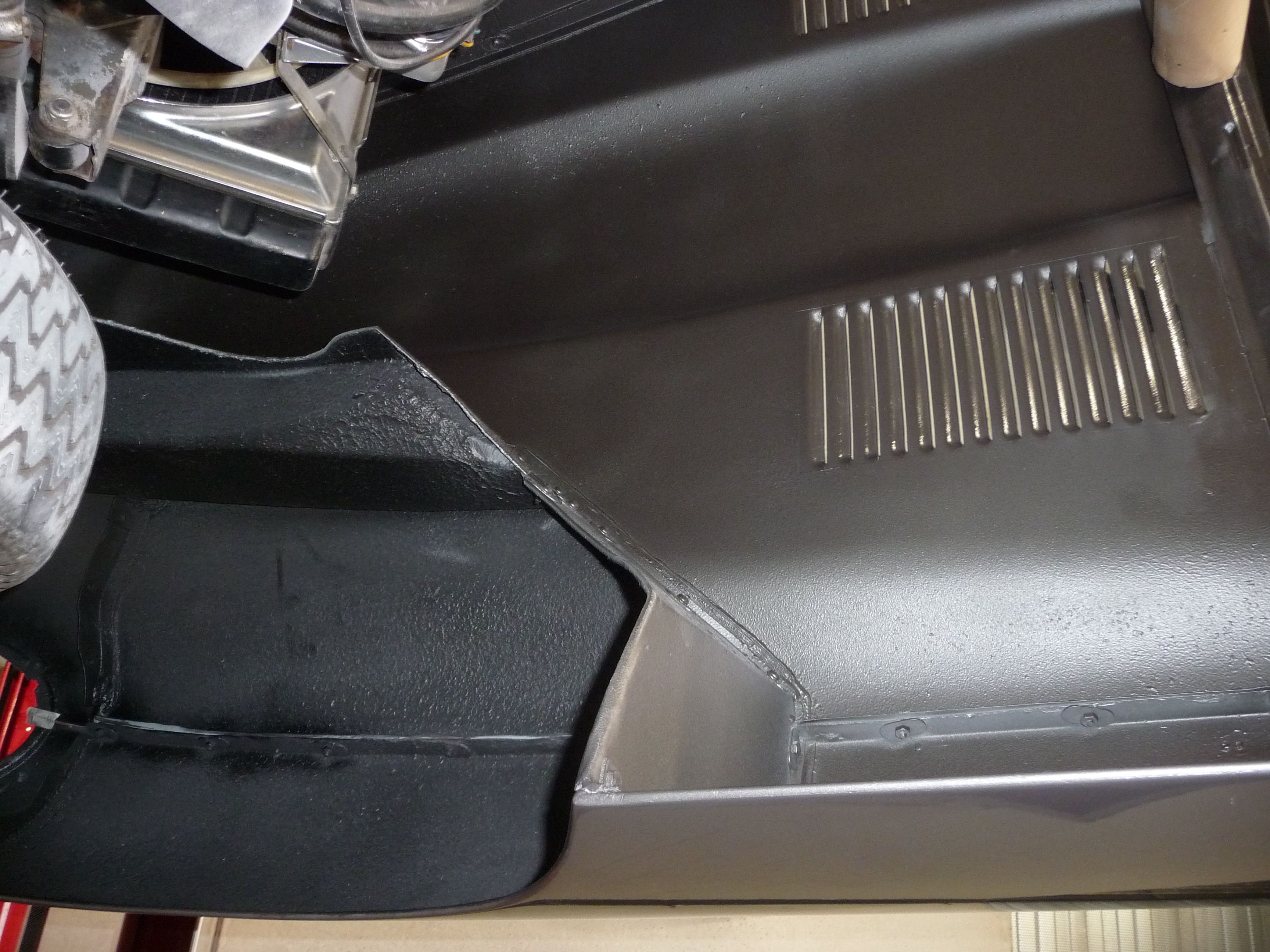 Il y aura encore une projection de revêtement antigravillons dans ces arches de roues quand le dessous du plancher sera traité.