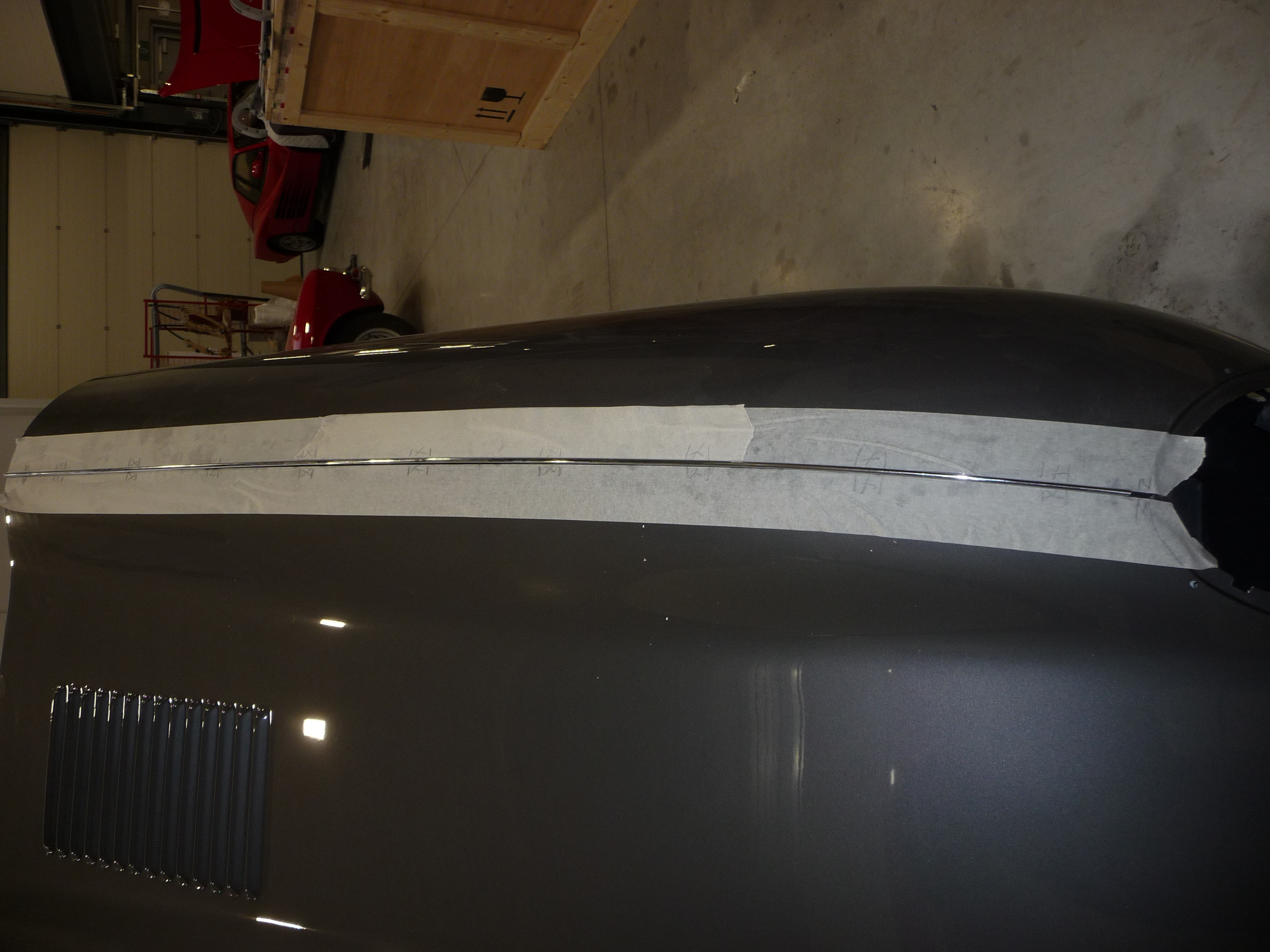 Ces joints de portières ne seront collés qu'en partie basse, mais pas encore en partie haute où ils seront seulement "scotchés", pour que je puisse ensuite visser de l'extérieur les "cantrails" sur le pourtour interne du pavillon.