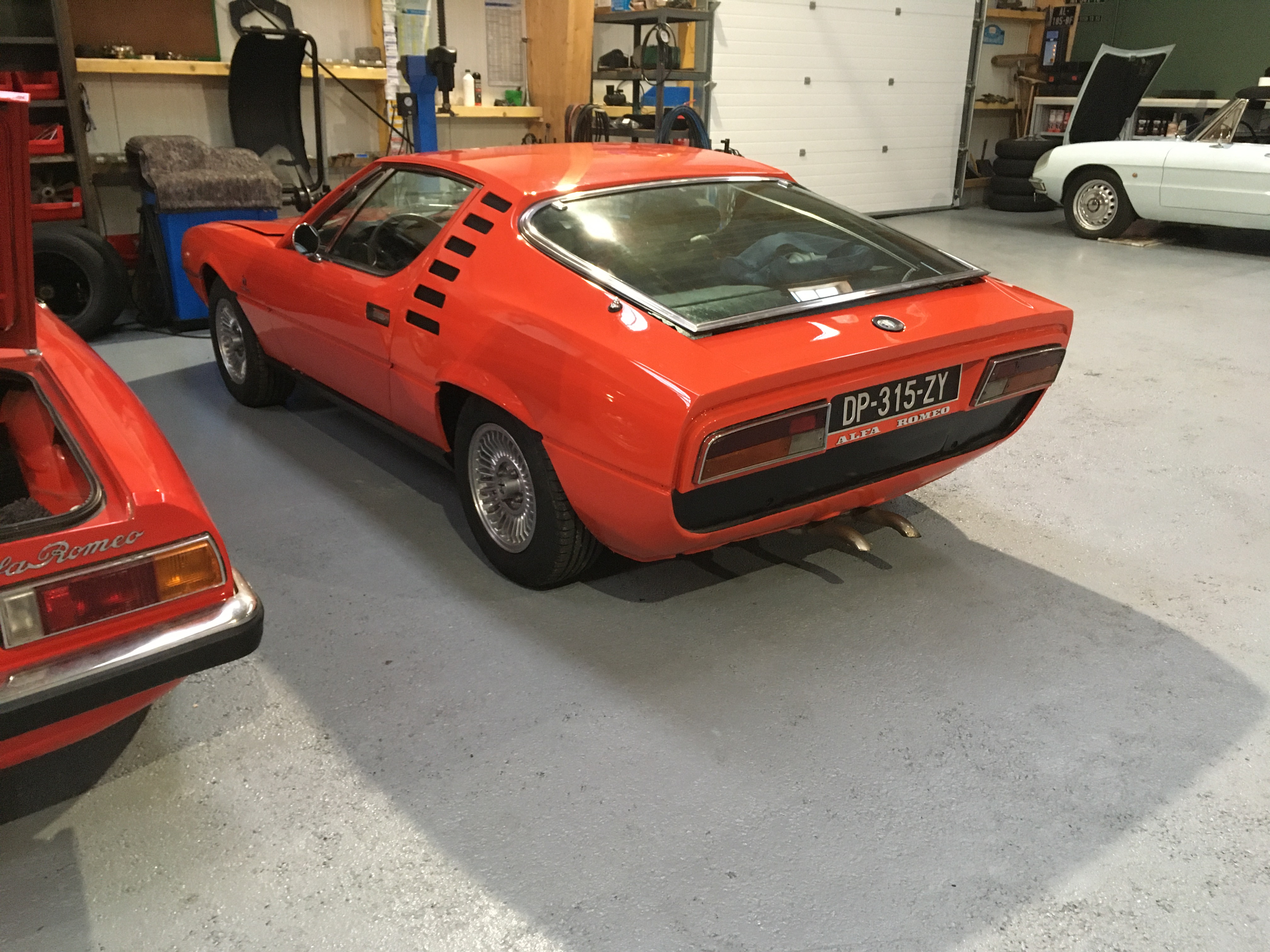 Au milieu de belles Alfa.... Et arrivée au bercail... Elle est à la place du GTV6, qui lui aussi a la batterie dans le coffre arrière, plus facile pour mettre chargeur de veille. Le pauvre GTV 6 est rélégué dans l’entrepôt....